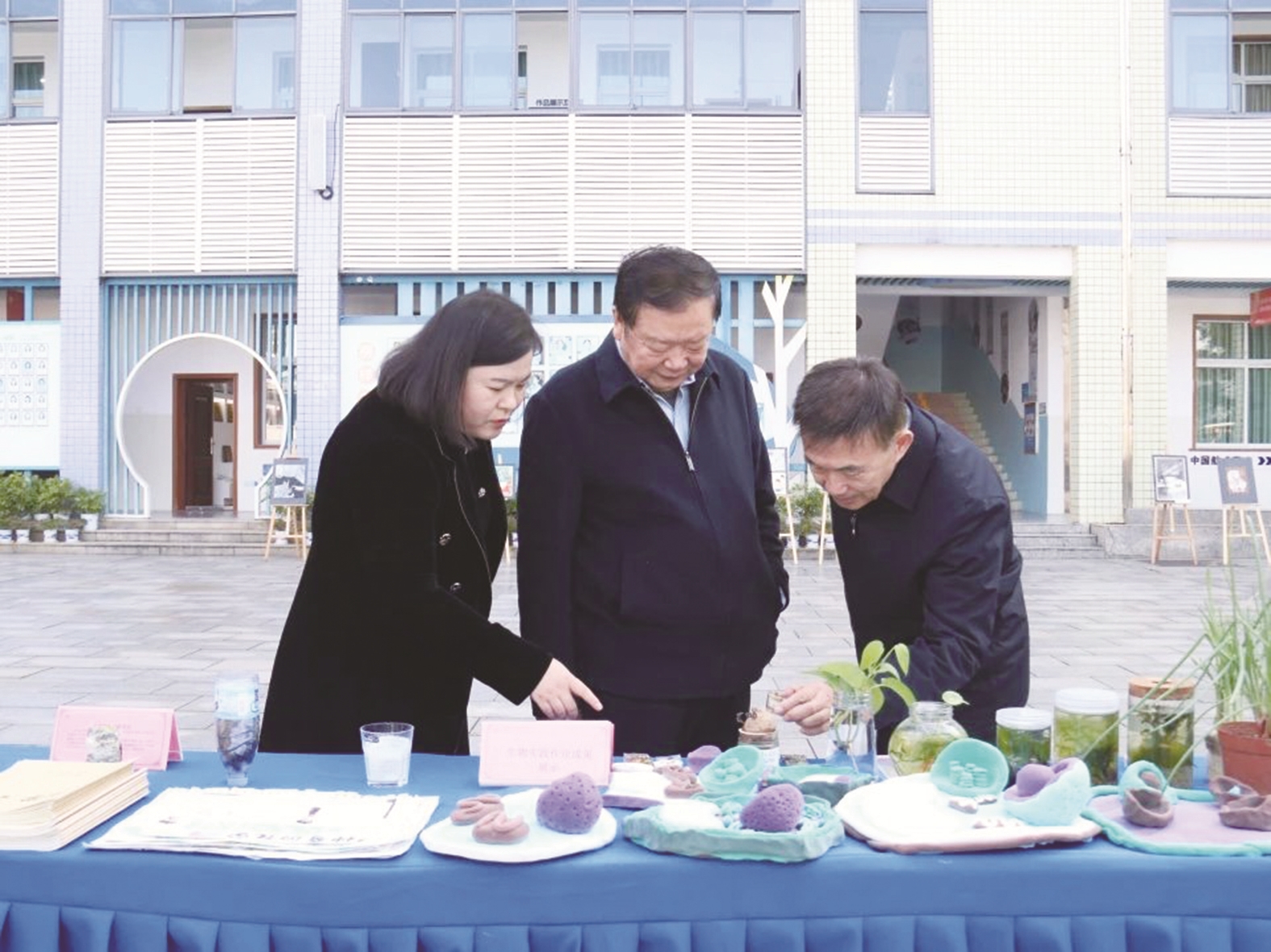 在株洲市外国语学校校长饶婷的陪同讲解下,张放平一行参观了至德长河文化墙、名师工作室、学校功能教室等,并观看学校“2+1”社团课堂展示、各科特色实践作业展、优秀美术作品展等。张放平对学校丰富社团课程和实践课程表示赞赏,并表示株外各科“提质减负”特色作业,就是一种教育创新,值得肯定。