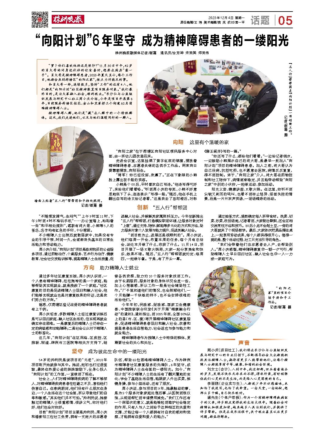 “向阳计划”6年坚守 成为精神障碍患者的一缕阳光
