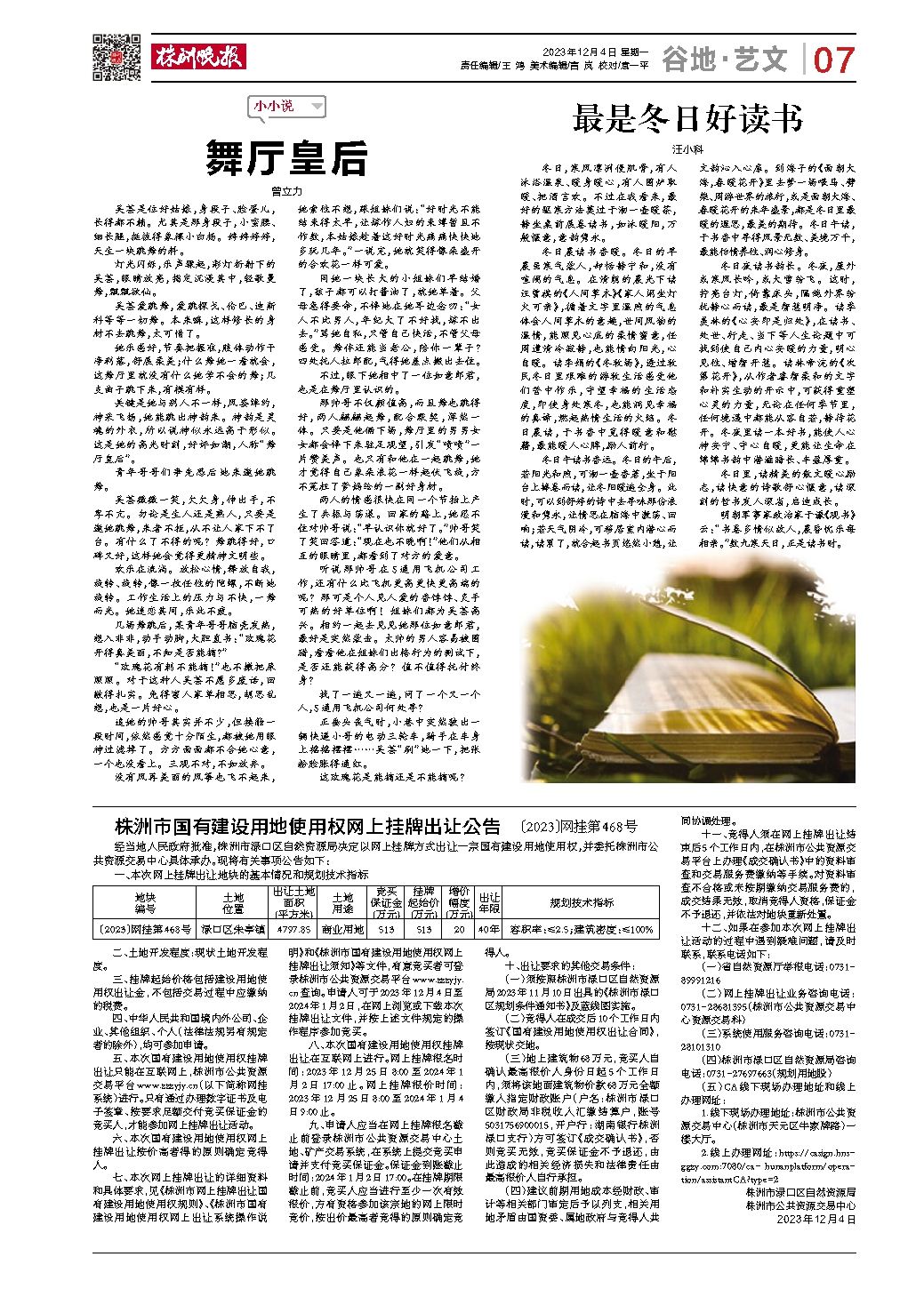 株洲市国有建设用地使用权网上挂牌出让公告 〔2023〕网挂第468号