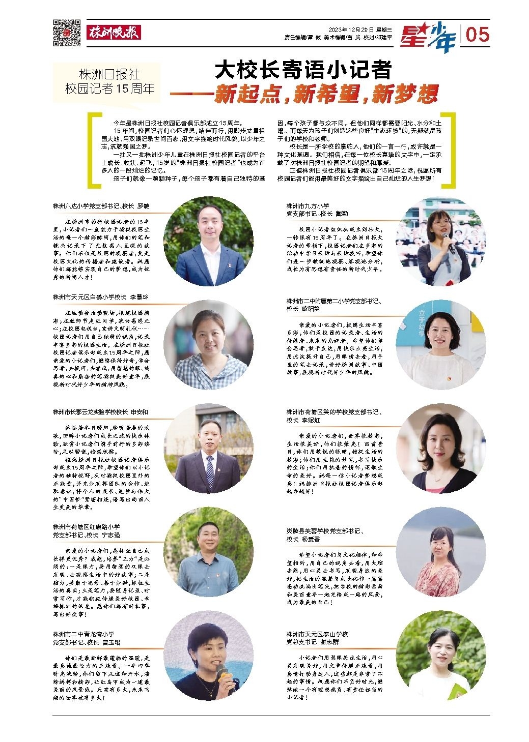 大校长寄语小记者 ——新起点,新希望,新梦想