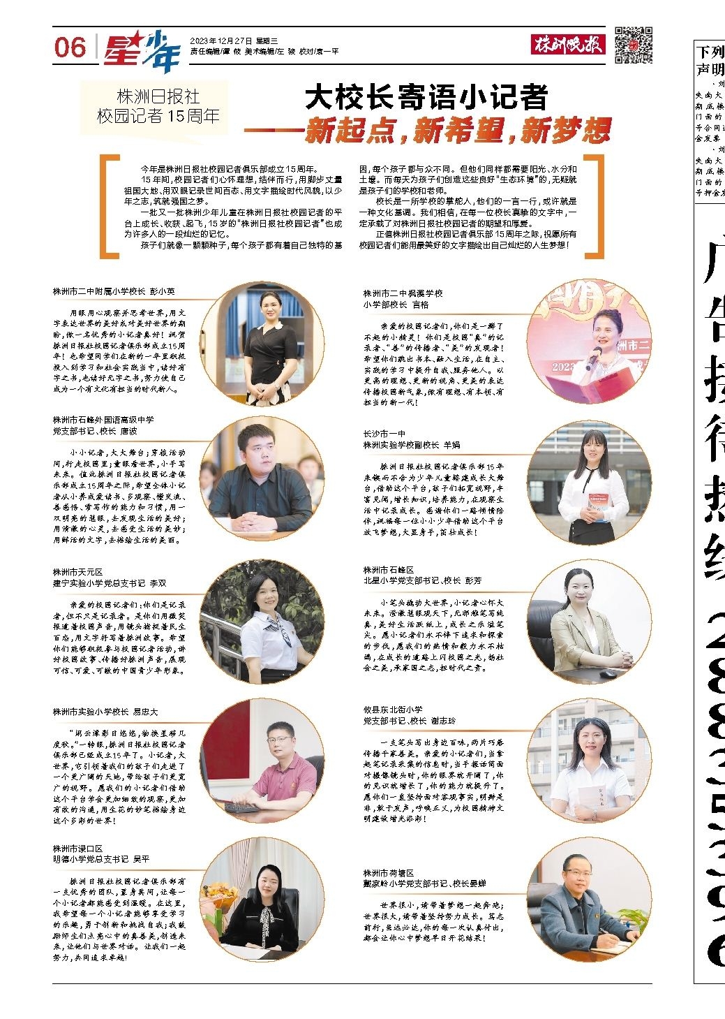 大校长寄语小记者 ——新起点,新希望,新梦想