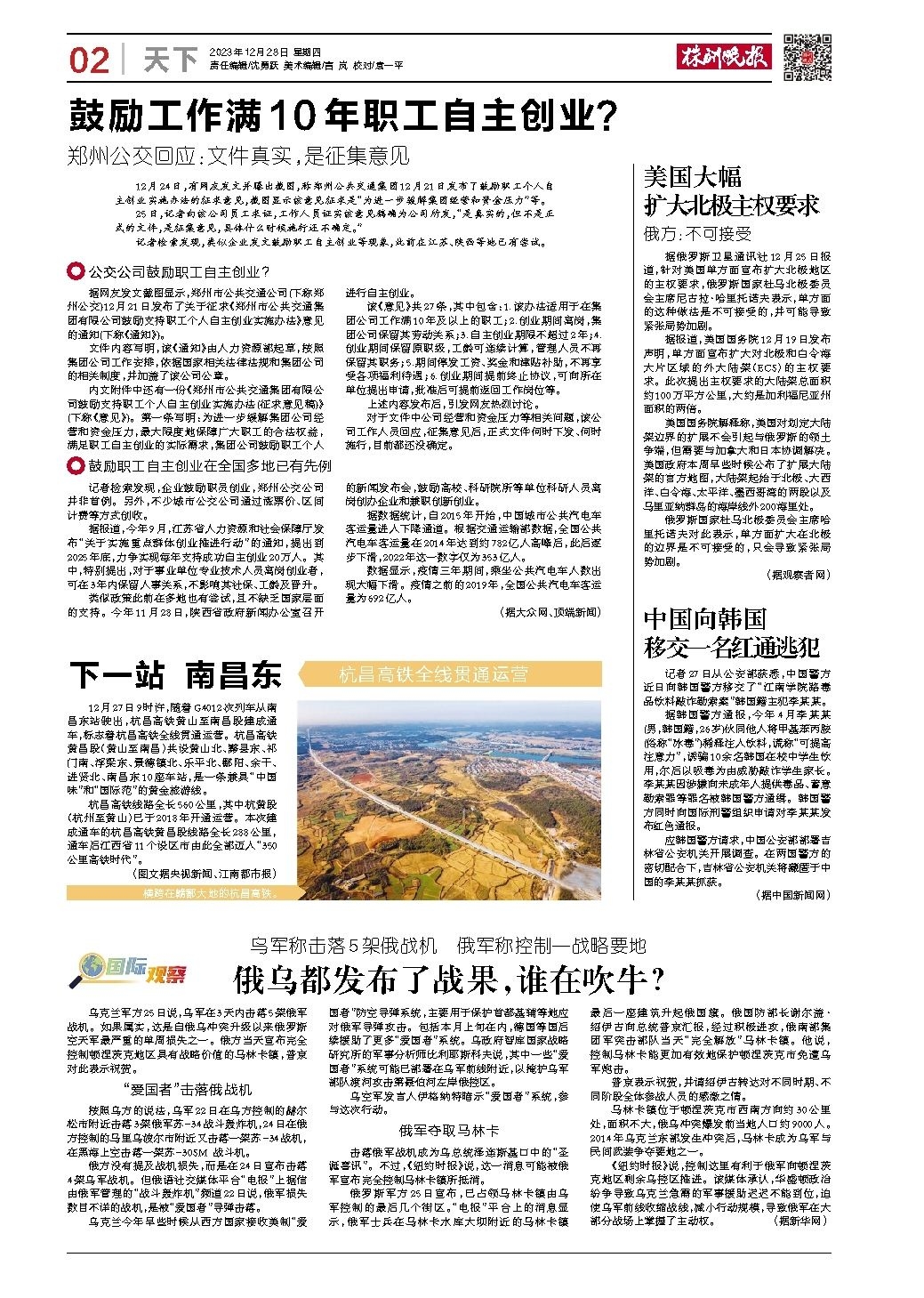 2023年12月28日《株洲晚报》