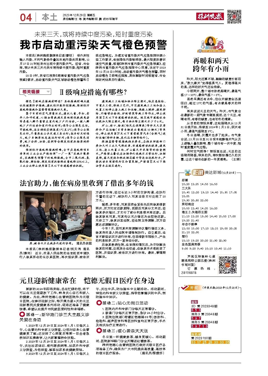2023年12月29日《株洲晚报》