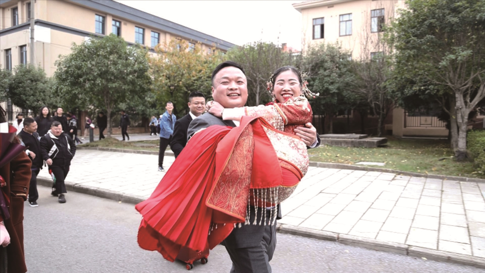 英俊的新郎倌抱得美人归。通讯员 供图