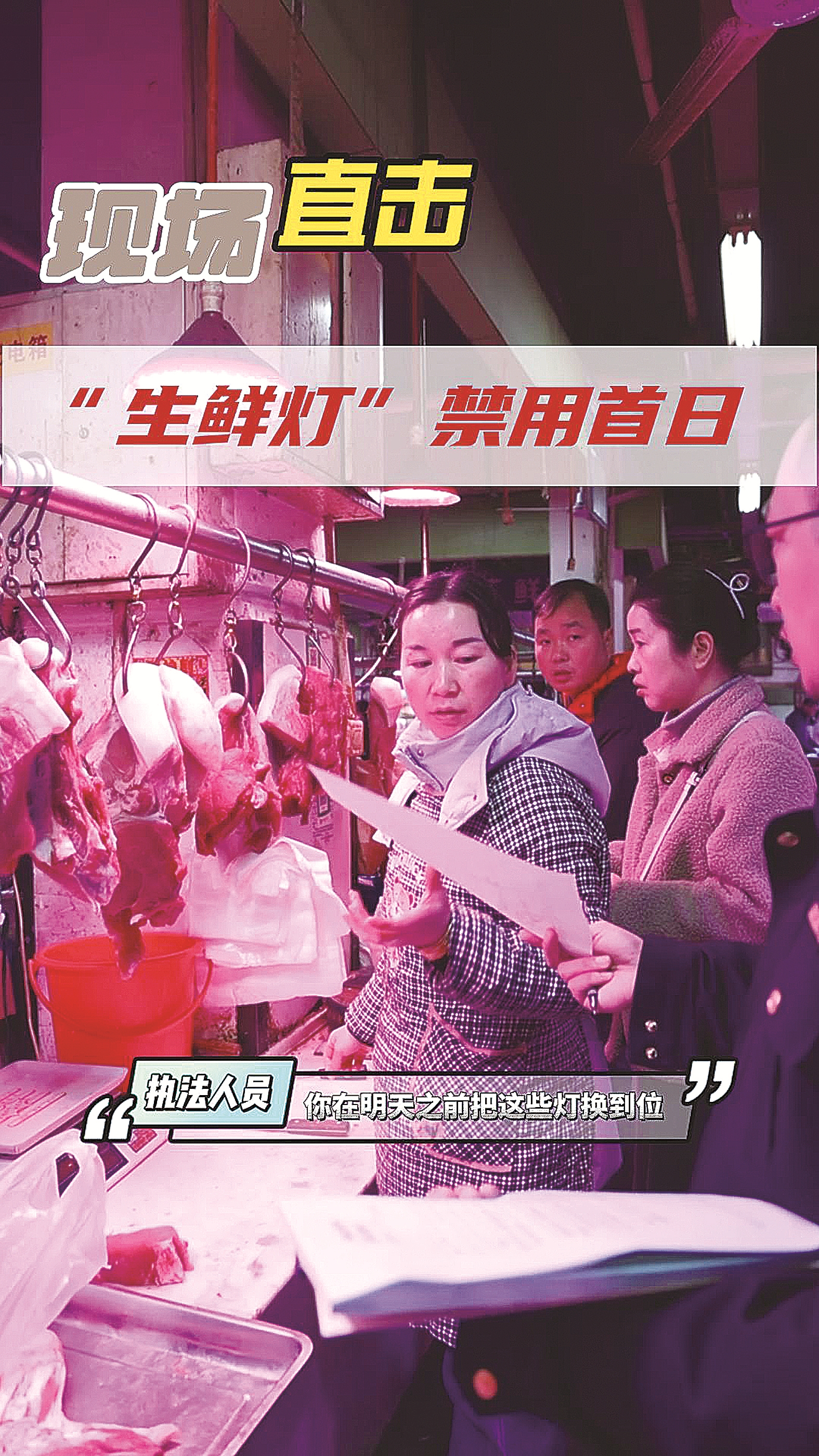 不少消费者都有过这样的经历,在摊位前购买鲜肉、果蔬时,明明看上去很新鲜,回到家却变了样。这一切归功于“生鲜灯”的使用。在“生鲜灯”的照射下,肉质鲜美红润、充满光泽,果蔬鲜嫩水灵、品质俱佳,但真实品质如何根本无法直观判断,眼见却不能为实,消费者深受其烦。12月1日,“生鲜灯”全面禁用的第一天。株洲执行情况怎么样,株洲市场监管带大家去市场上看一看。