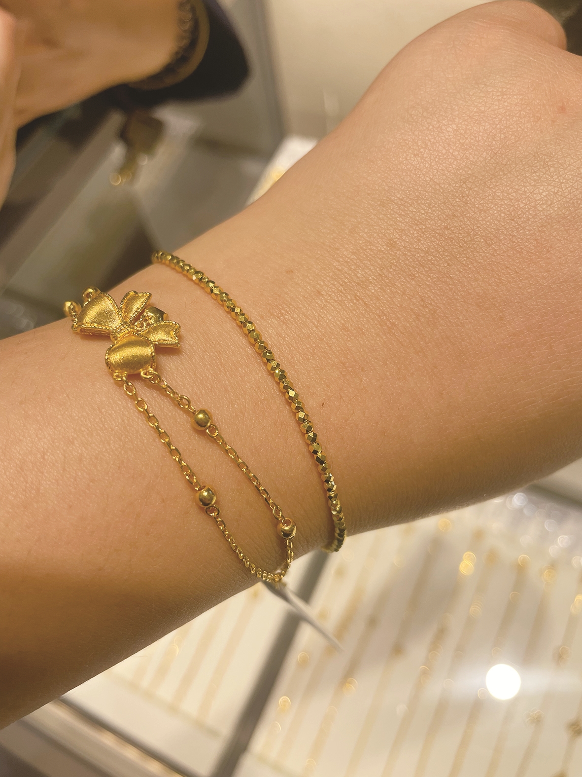 95后女孩张小凌从参加工作后开始买金饰,时不时购入一件,不知不觉就攒了不少。“买了一个20多克的镯子,其他每件饰品都不超过10克,一共买了7、8件,总重大约60克。”