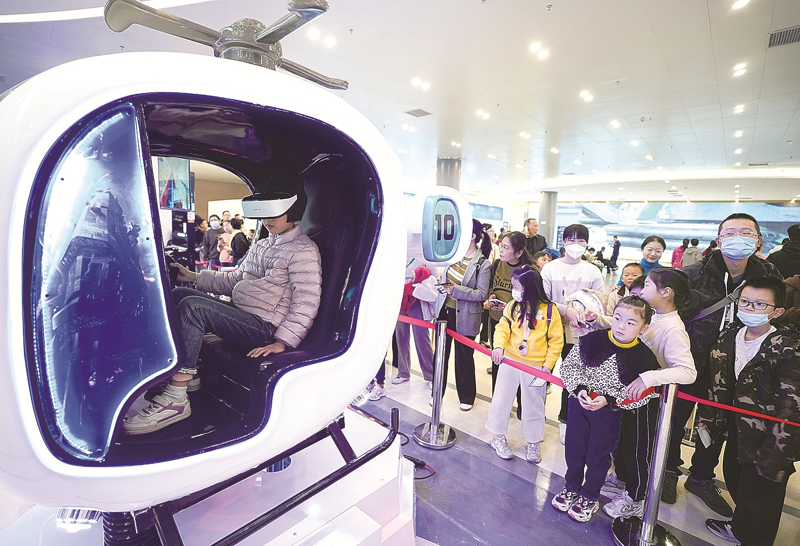 市民在体验数字VR设备。