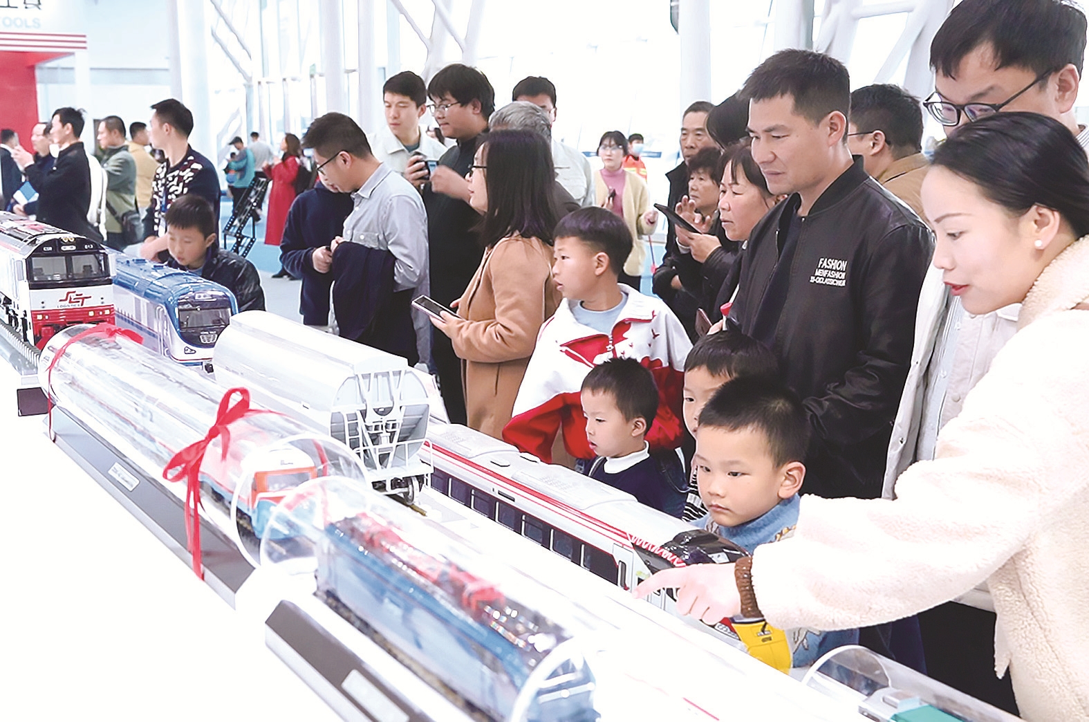 周末两天,众多市民参观轨博会。