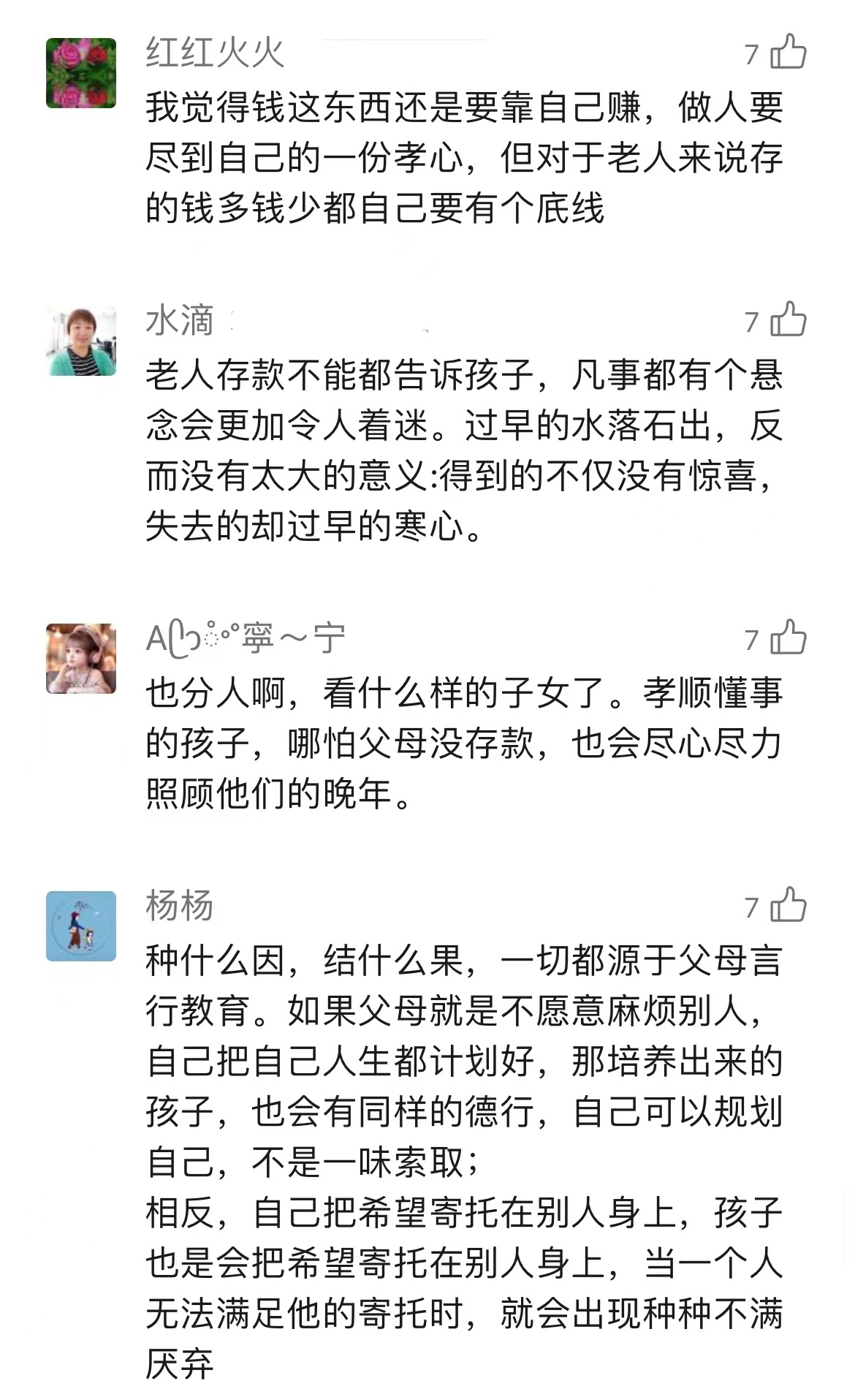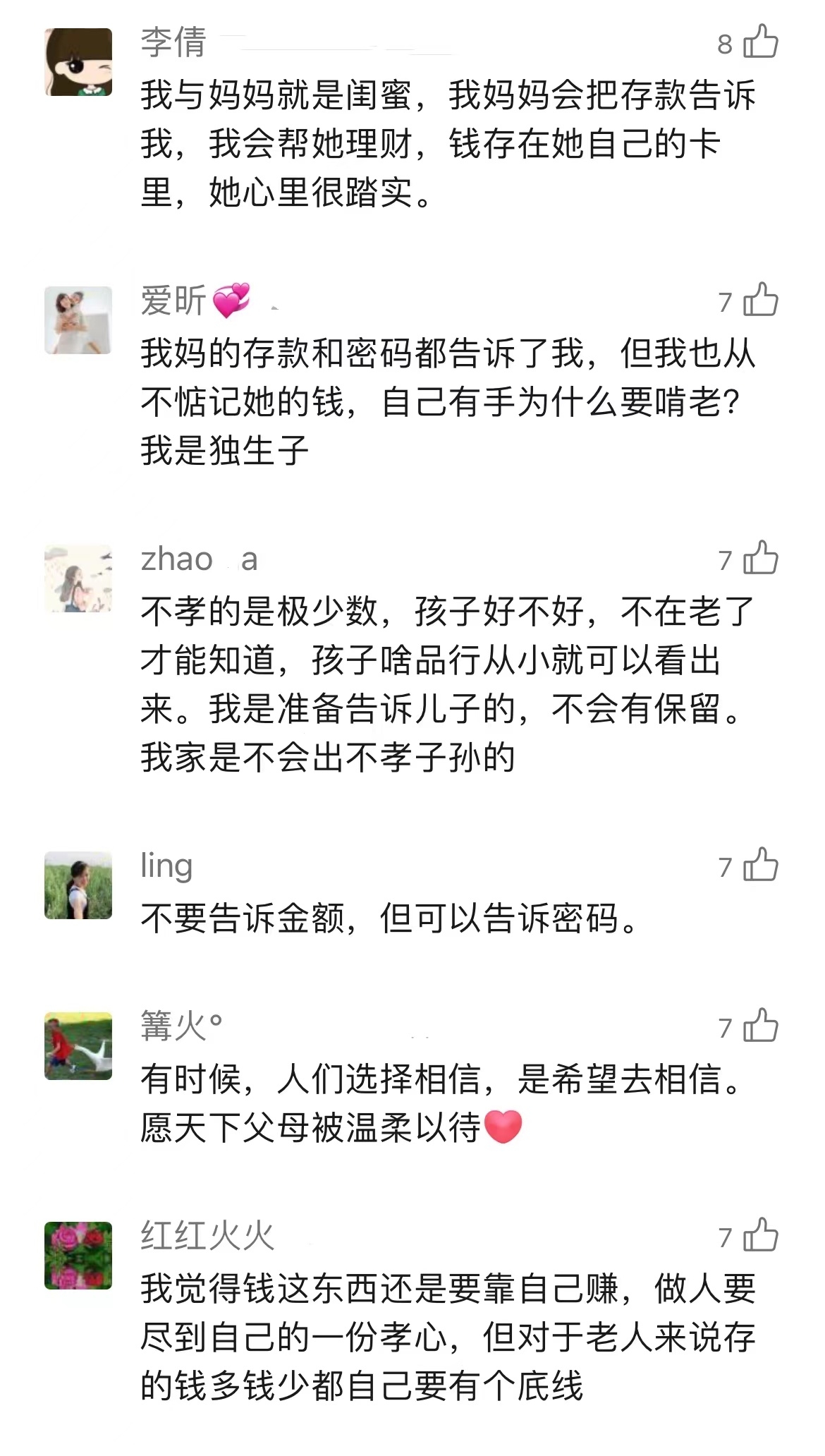 由此,“老年人要不要把存款告诉子女”的话题引发众人讨论。