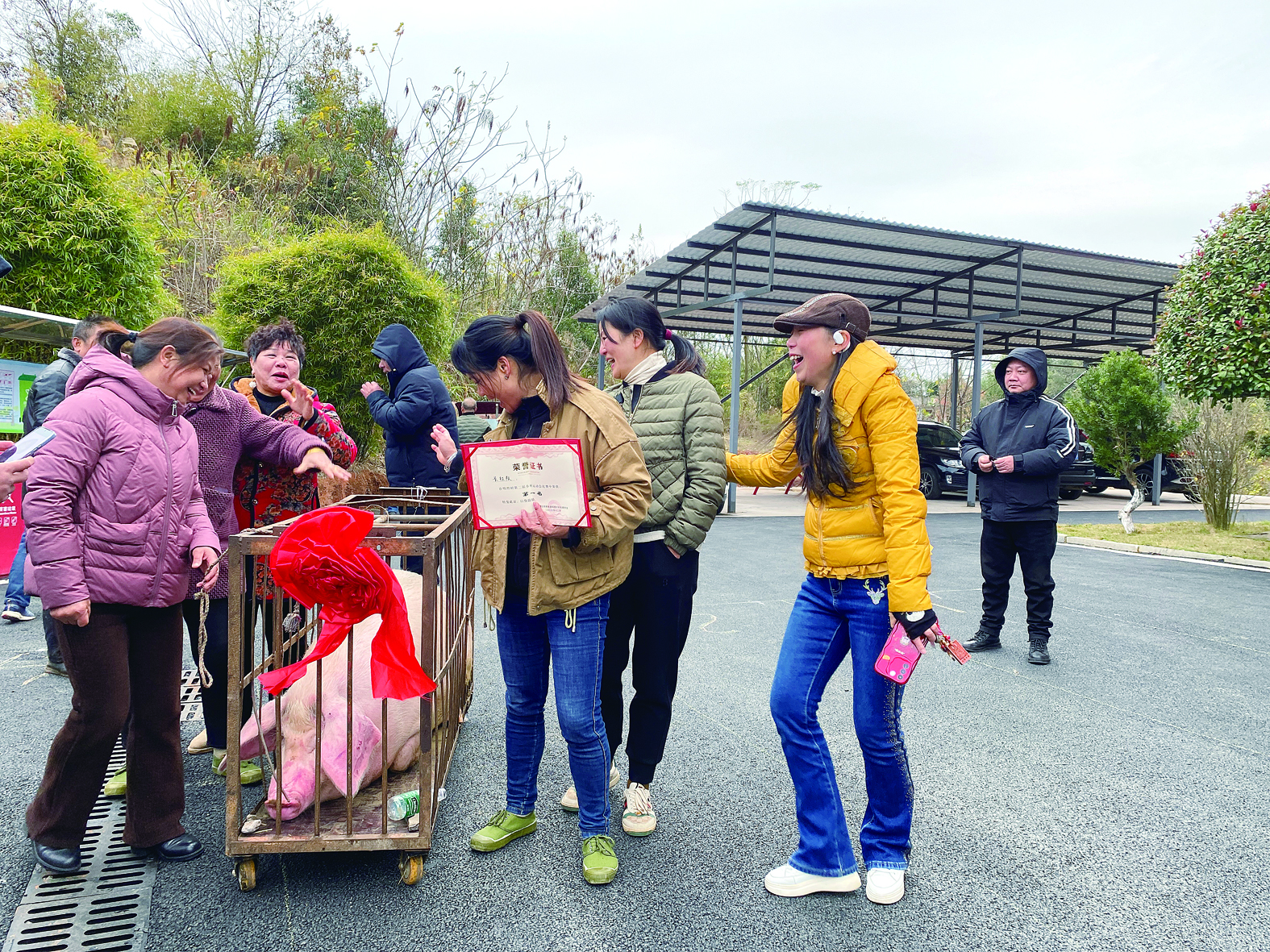 长征队获得一等奖,奖品是一头猪。记者/旷昆红 摄