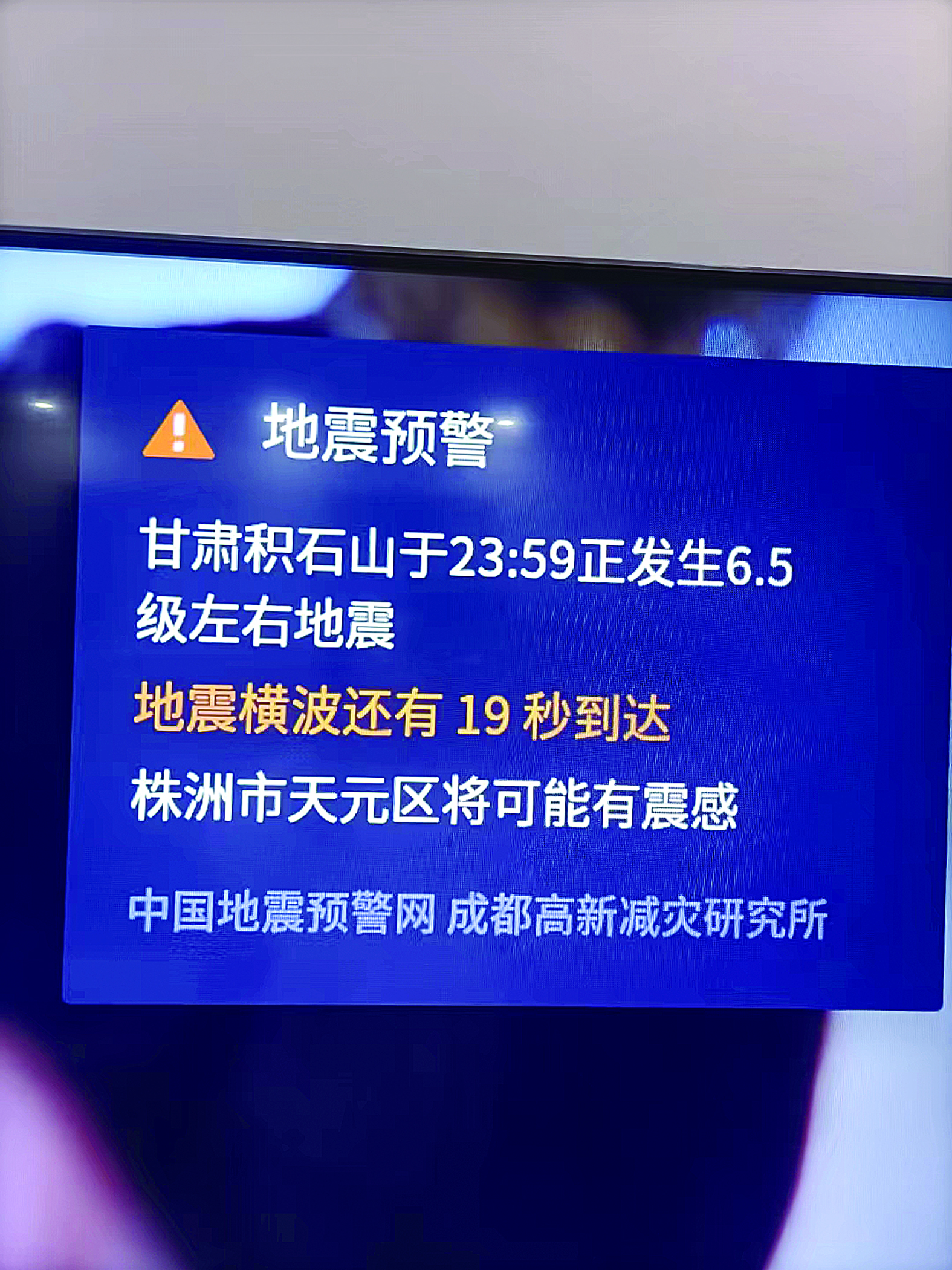 “当时正在刷抖音,手机就弹出了地震提示信息。”昨夜,市民刘先生收到了来自国家地震预警平台发布的预警通知,提示所在的天元区可能有震感。