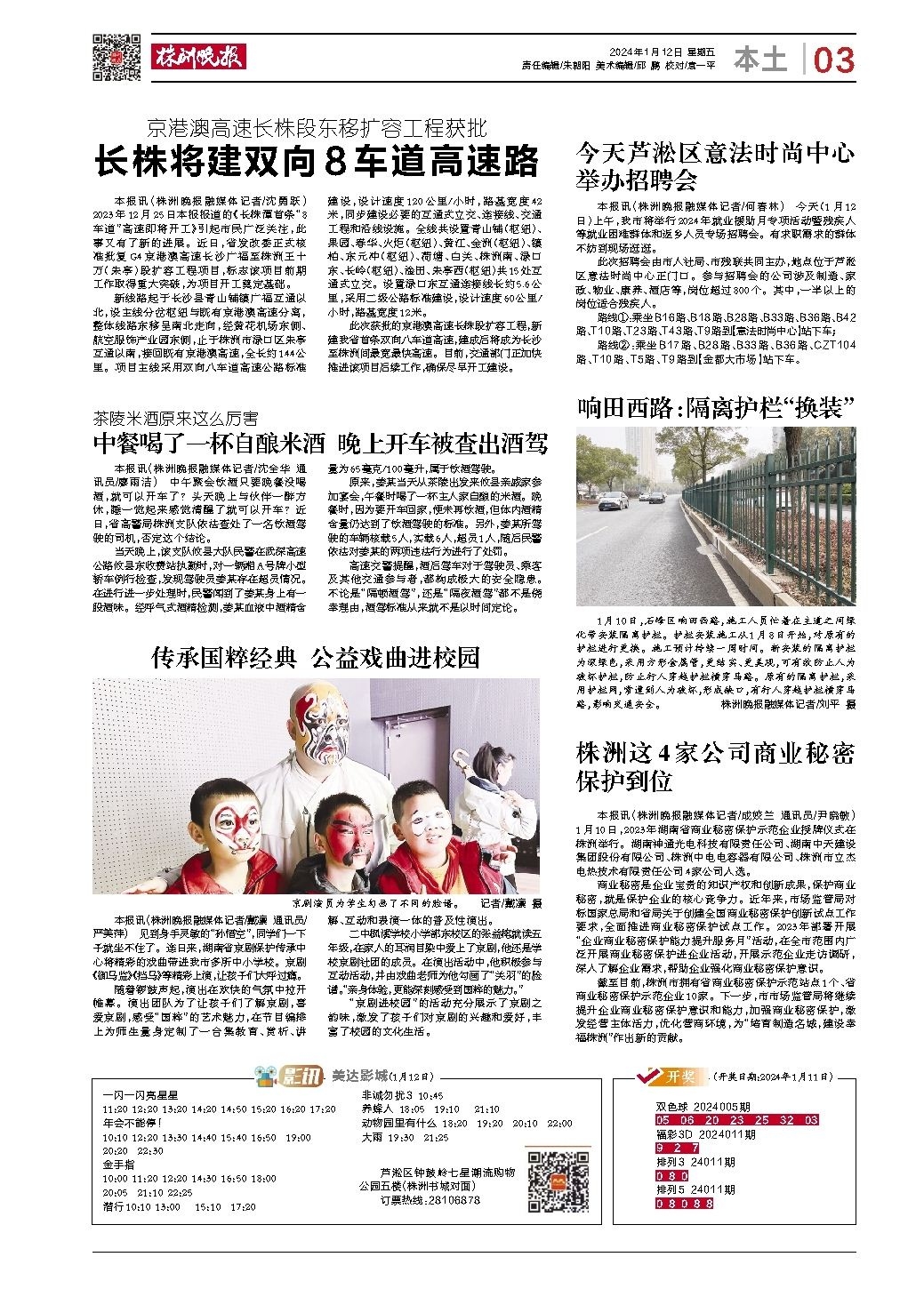 2024年01月12日《株洲晚报》