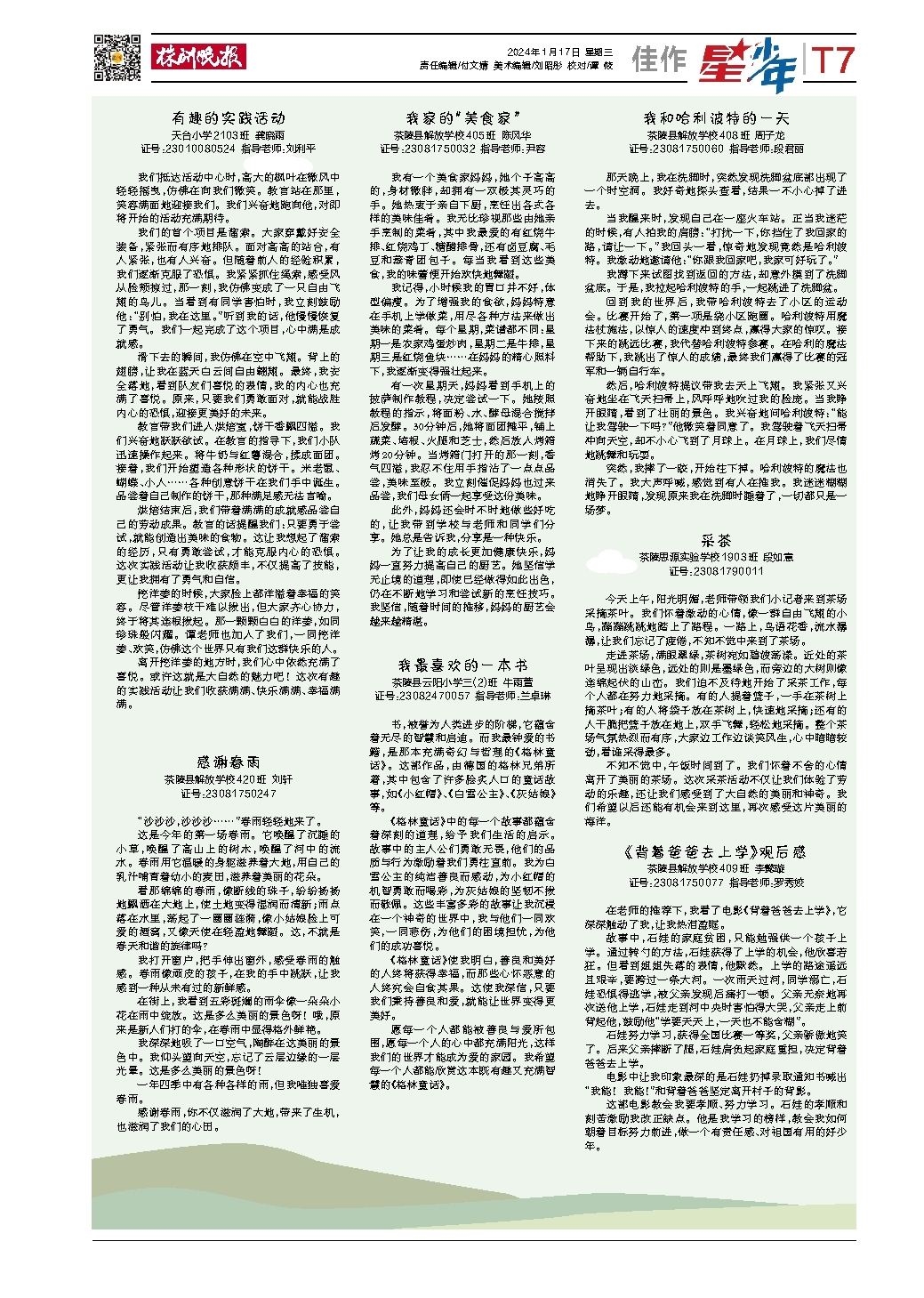 2024年01月17日《株洲晚报》