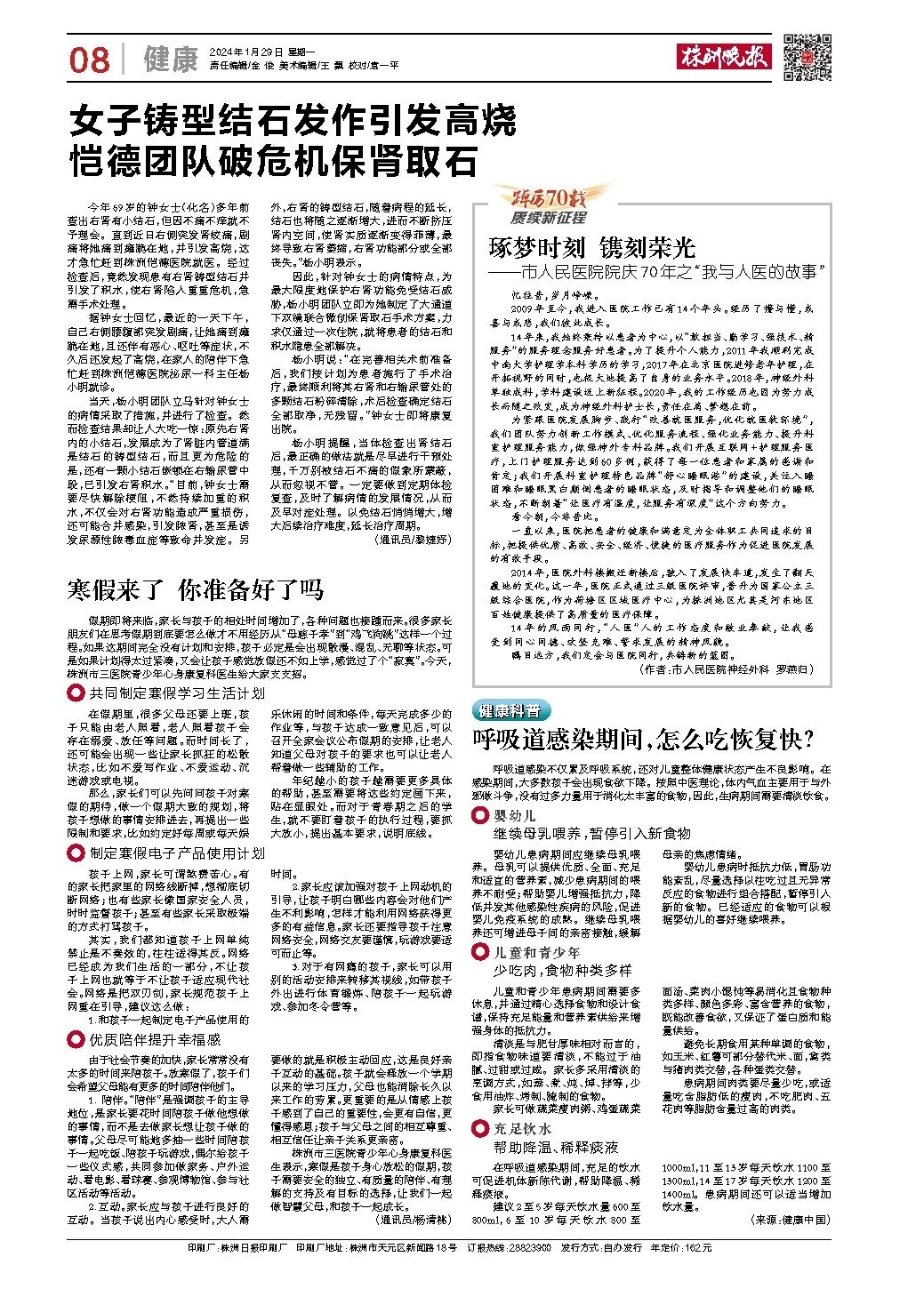 女子铸型结石发作引发高烧 恺德团队破危机保肾取石