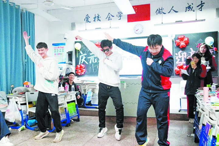 株洲八中班级元旦晚会,学生表演“科目三”放松心情。 通讯员供图