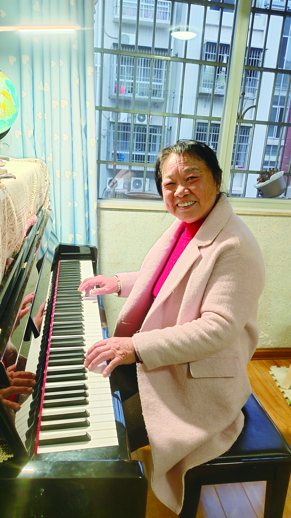 “我之所以学钢琴,主要是给全家树立一个活到老、学到老的好榜样,要给全家带来正能量。”她笑嘻嘻地向记者说,自己是前年9月才开始学弹钢琴的,目前水平还“差得远”,只能弹奏一些简单的乐谱。