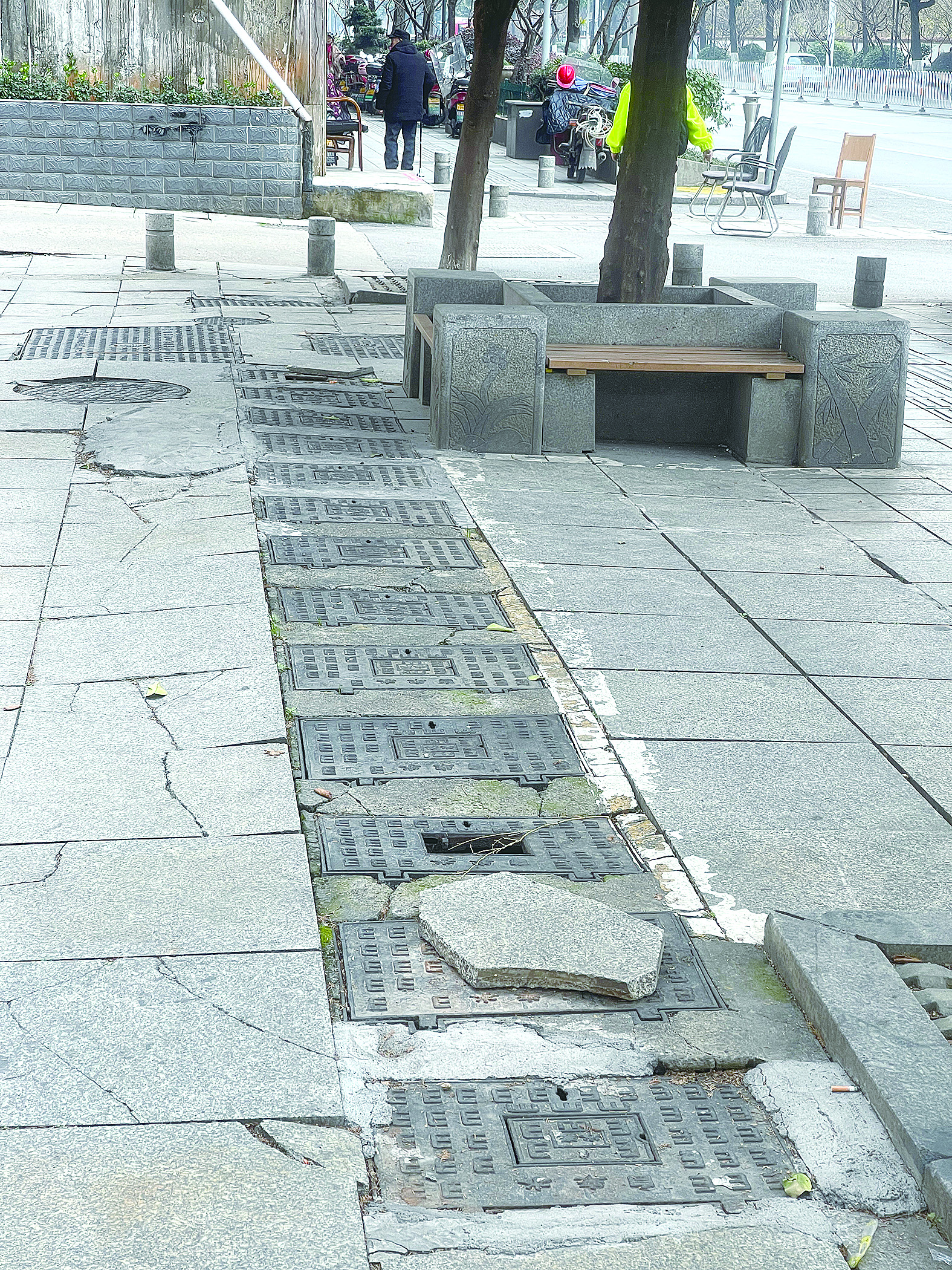 “这要是晚上没看清,一脚踩进去磕了摔了,得有多危险。”市民张先生说,希望这类问题能尽快解决。
