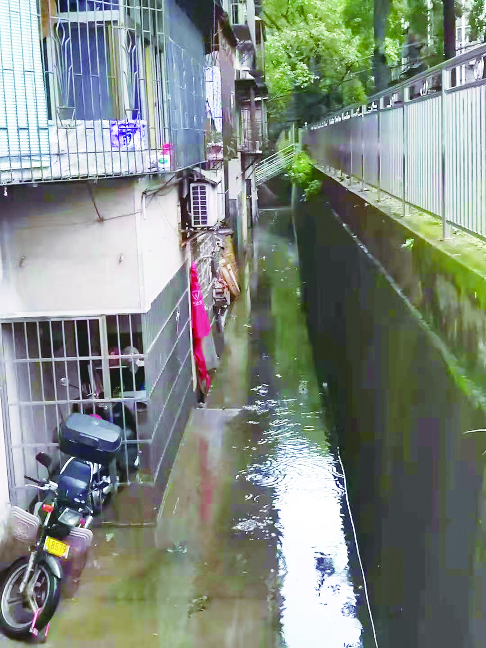 曾经,一遇大雨,邮电小区1栋污水成河。 (受访者供图)
