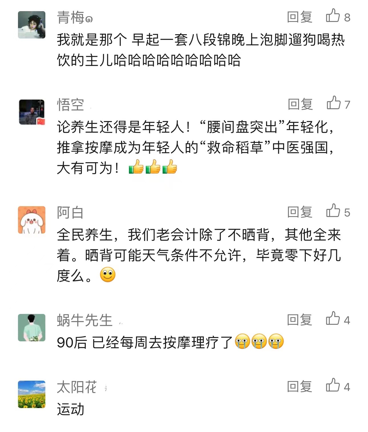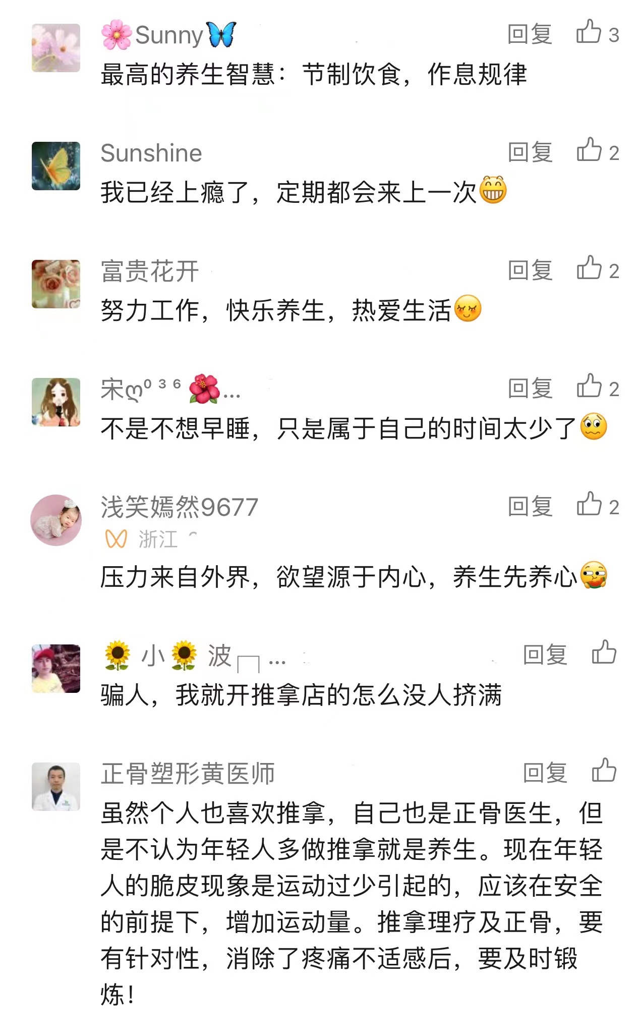 市民刘先生:一些年轻人对按摩养生的功效存在误解,认为它能减肥或治疗疾病等。商家和消费者都应保持理性,让按摩养生真正成为一种健康、时尚的休闲方式。