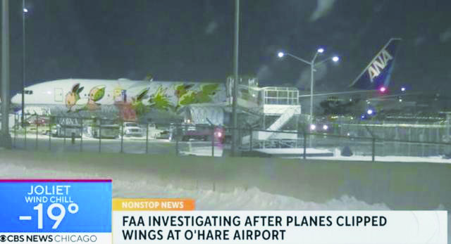 当地时间1月15日,美国联邦航空管理局发布消息称,芝加哥奥黑尔国际机场14日发生了两机相撞事故。报道称,当天18时30分左右,日本全日空一架波音777飞机的左翼尖端撞上了达美航空波音717飞机的尾部,暂无人员伤亡的报告。联邦航空管理局表示将调查这起事件。