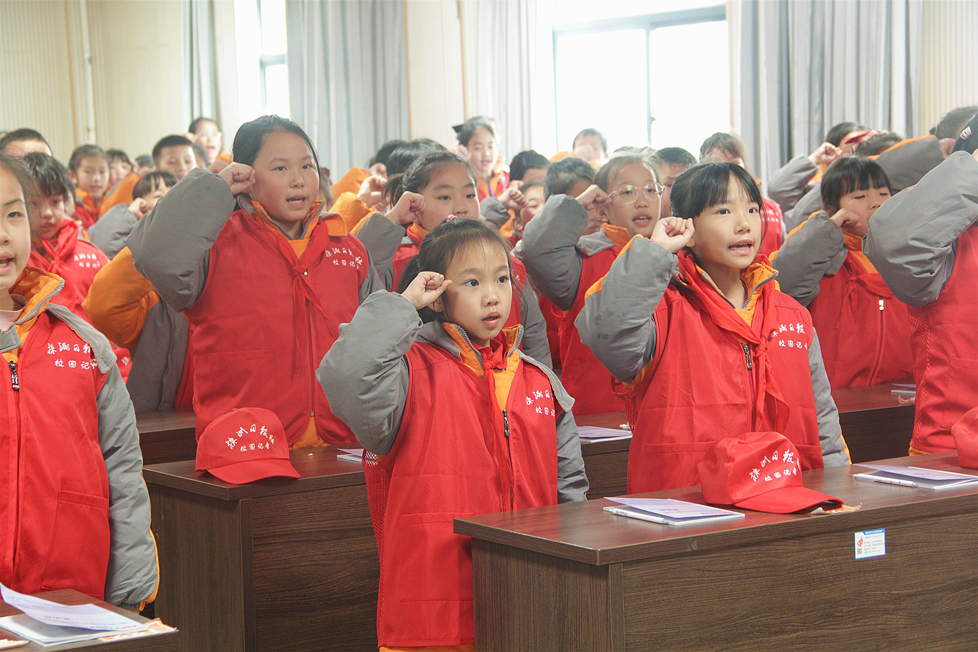 天元小学2024年度校园记者集体宣誓。记者/彭慧洁 摄