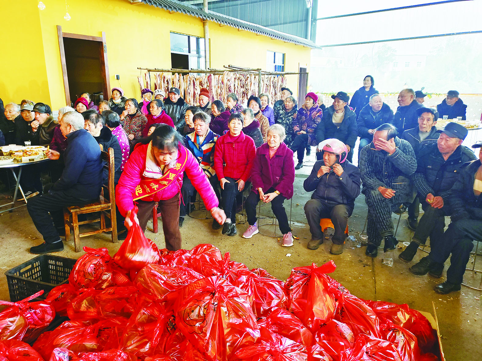 近日,天元区乡里香味饭店的老板杨辉,精心准备了200份扣肉、200箱脐橙、400瓶啤酒、400份发糕等年货,赠送给辖区68岁以上老人和环卫工人,让他们感受到关爱和温暖。杨辉是群丰镇合花社区的一名党员,在本地做餐饮生意多年,一直热心于公益事业。