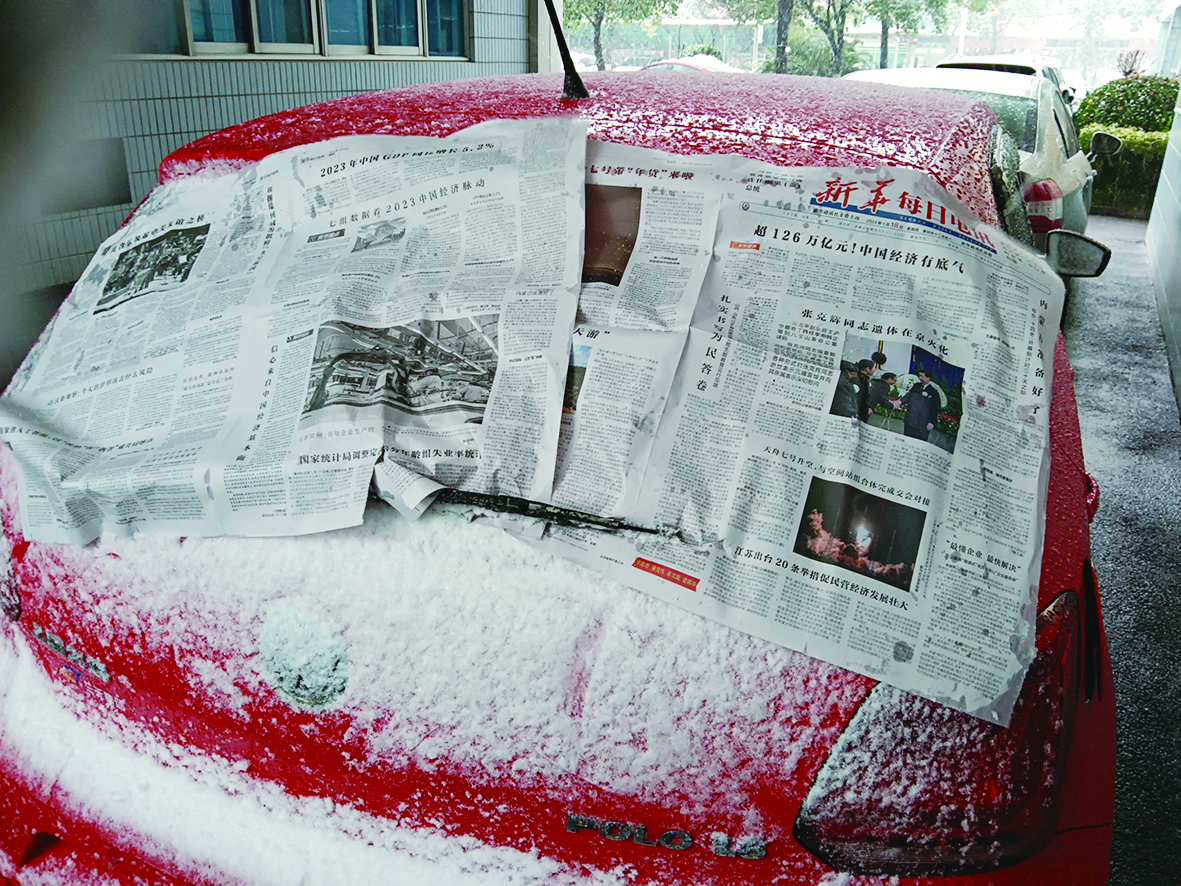 本报讯(株洲晚报融媒体记者/沈全华) 2024年第一场雪降临株洲,你是否在为停在室外的车辆被冰雪盖得严严实实烦扰?1月22日,通过记者的实践,发现报纸的保暖效果不错。
