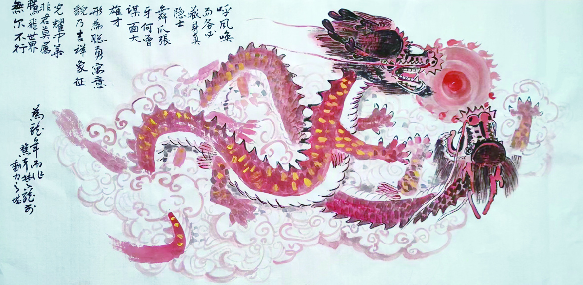 我们还收到画家吴楚龙先生的丹青画“龙”。此幅画为龙年而作,上面写有“光耀中华,非君莫属,腾飞世界,无尔不行”的题跋。