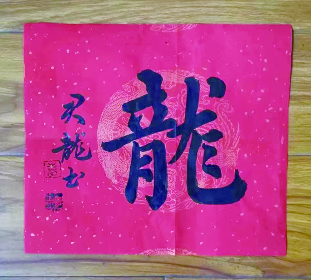湖南省书法家协会、美术家协会会员马立明写的龙字。