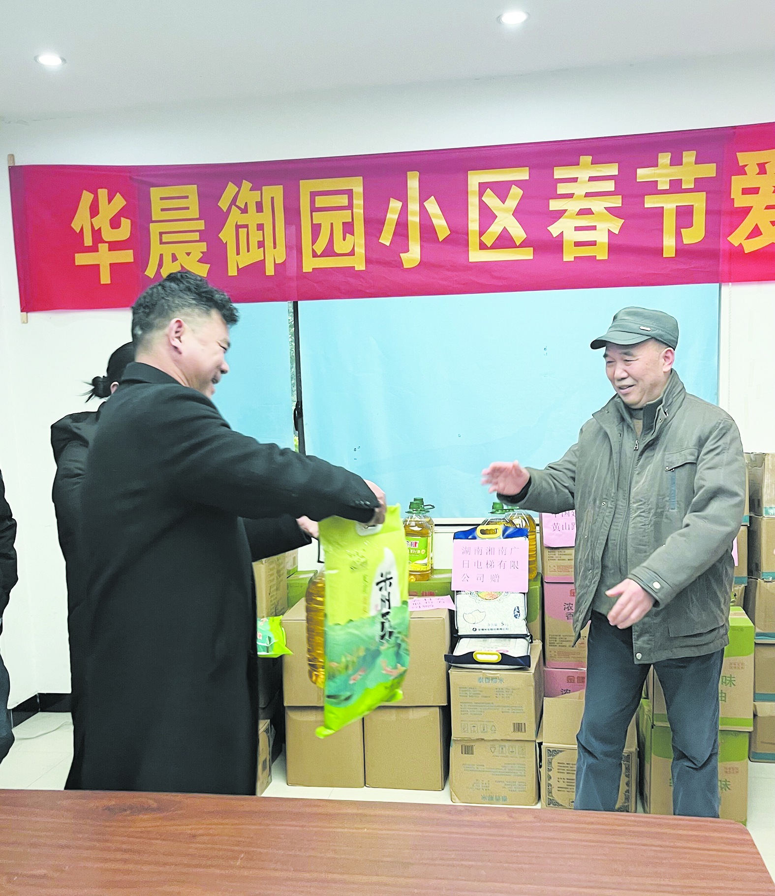 1月31日,天元区泰山路街道谢家冲社区华晨御园小区,小区党支部、业委会、物业公司及小区企业和商家联合开展爱心慰问活动。共筹集了100份物资对小区退役军人、现役军人家属、高龄老人进行走访慰问。目前,该小区的退役军人有70余名,80周岁以上的老人有20余人。