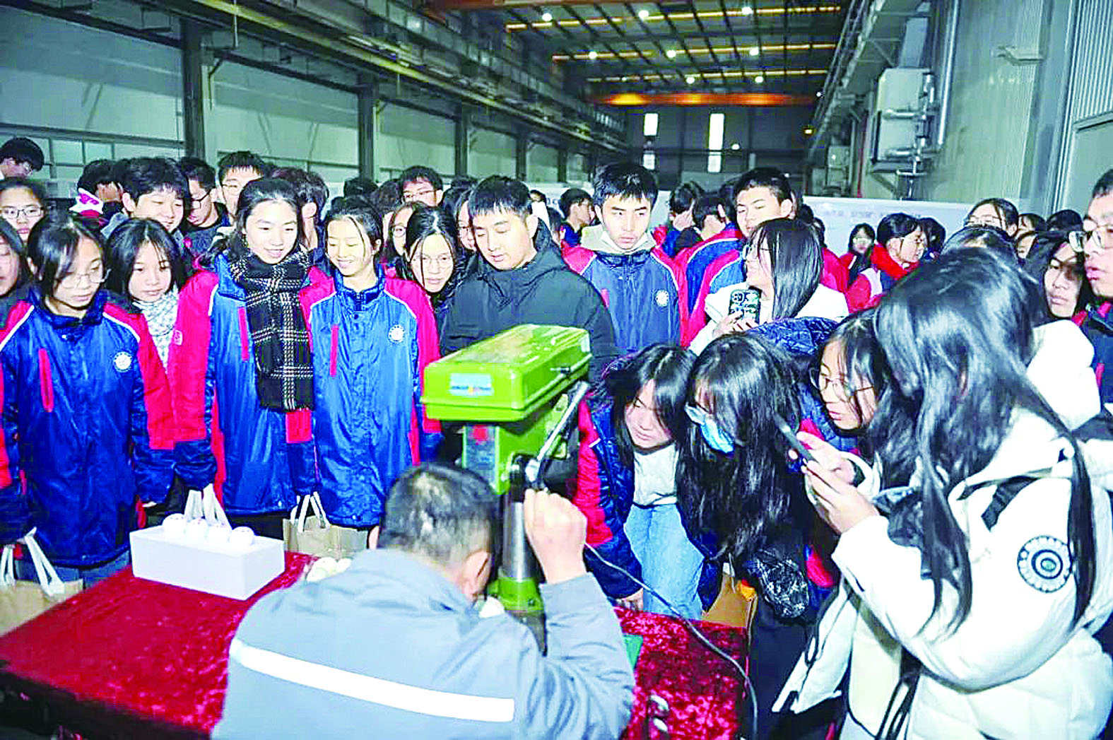 同学们在中车电机公司观看技术人员操作。受访单位供图