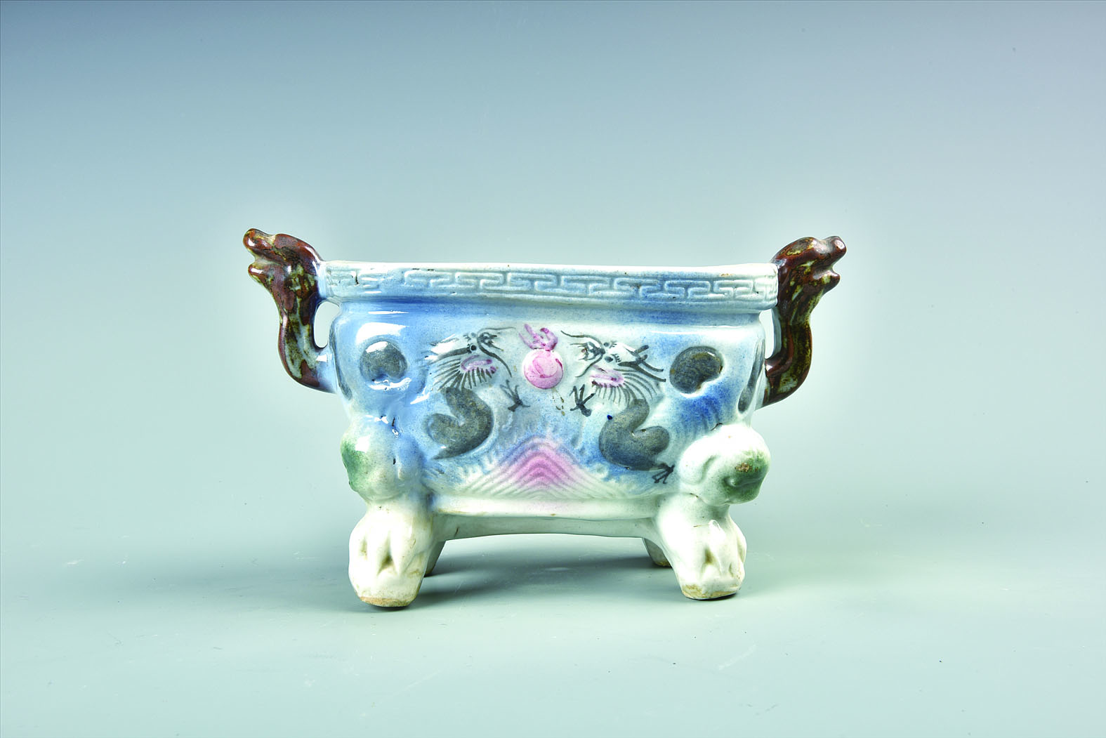 民国醴陵窑双龙戏珠纹瓷香炉。 通讯员供图