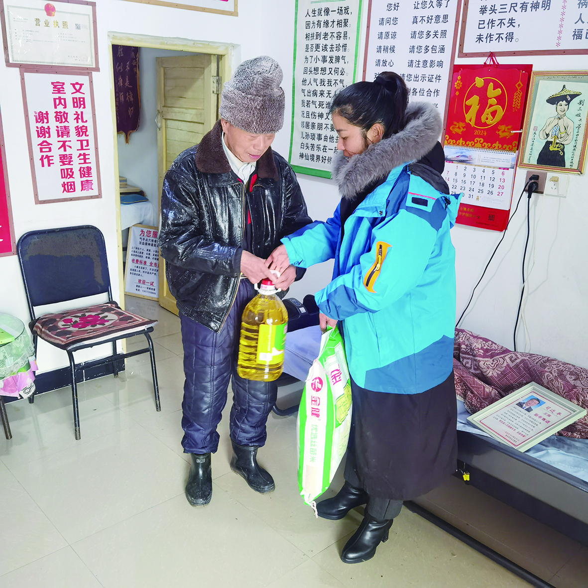 年货,给老人带来了温暖。 记者/谢嘉 摄