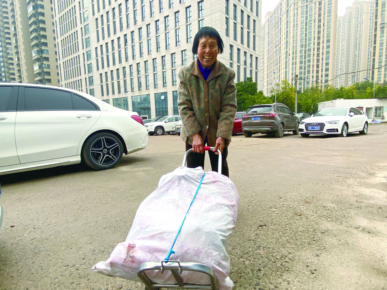 满满装了一袋子,一位收到爱心年货的特困群众喜笑颜开。 记者/旷昆红 摄