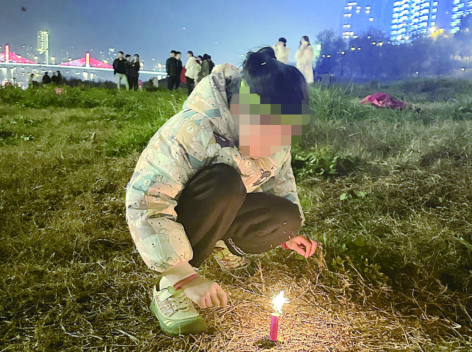 未成年人近距离燃放烟花,存在一定的安全隐患。 记者/戴凛 摄