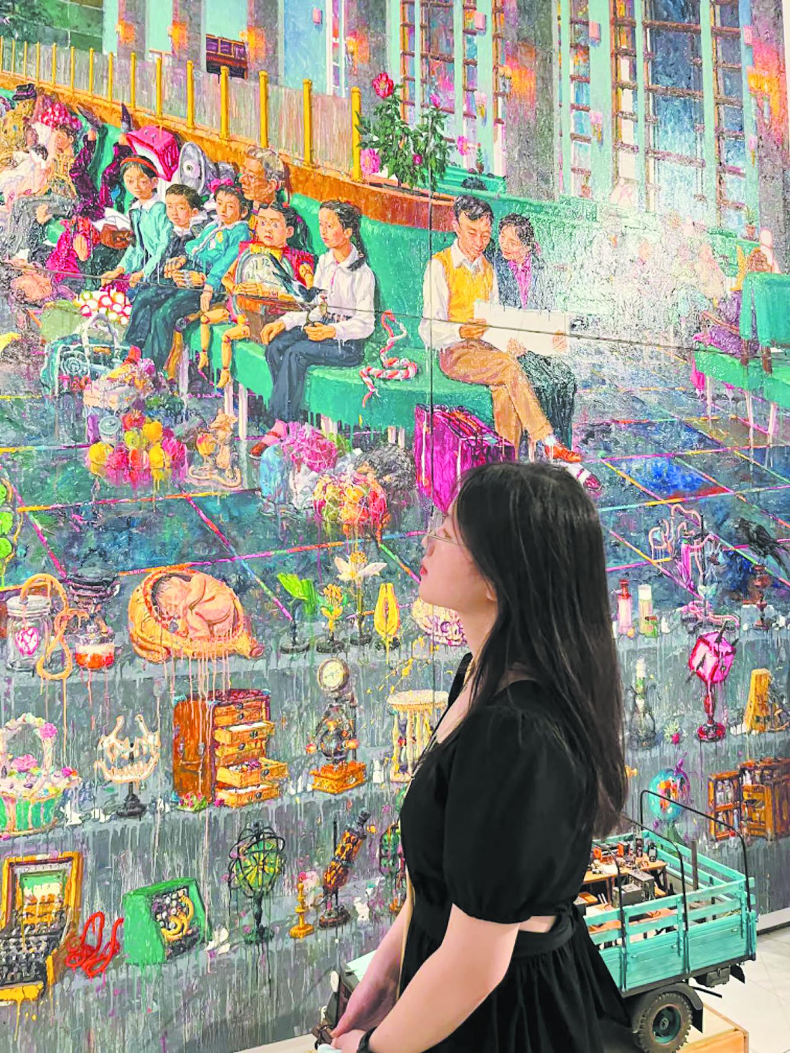 何千禧正在看中央美术学院毕业生画展。 何千禧供图