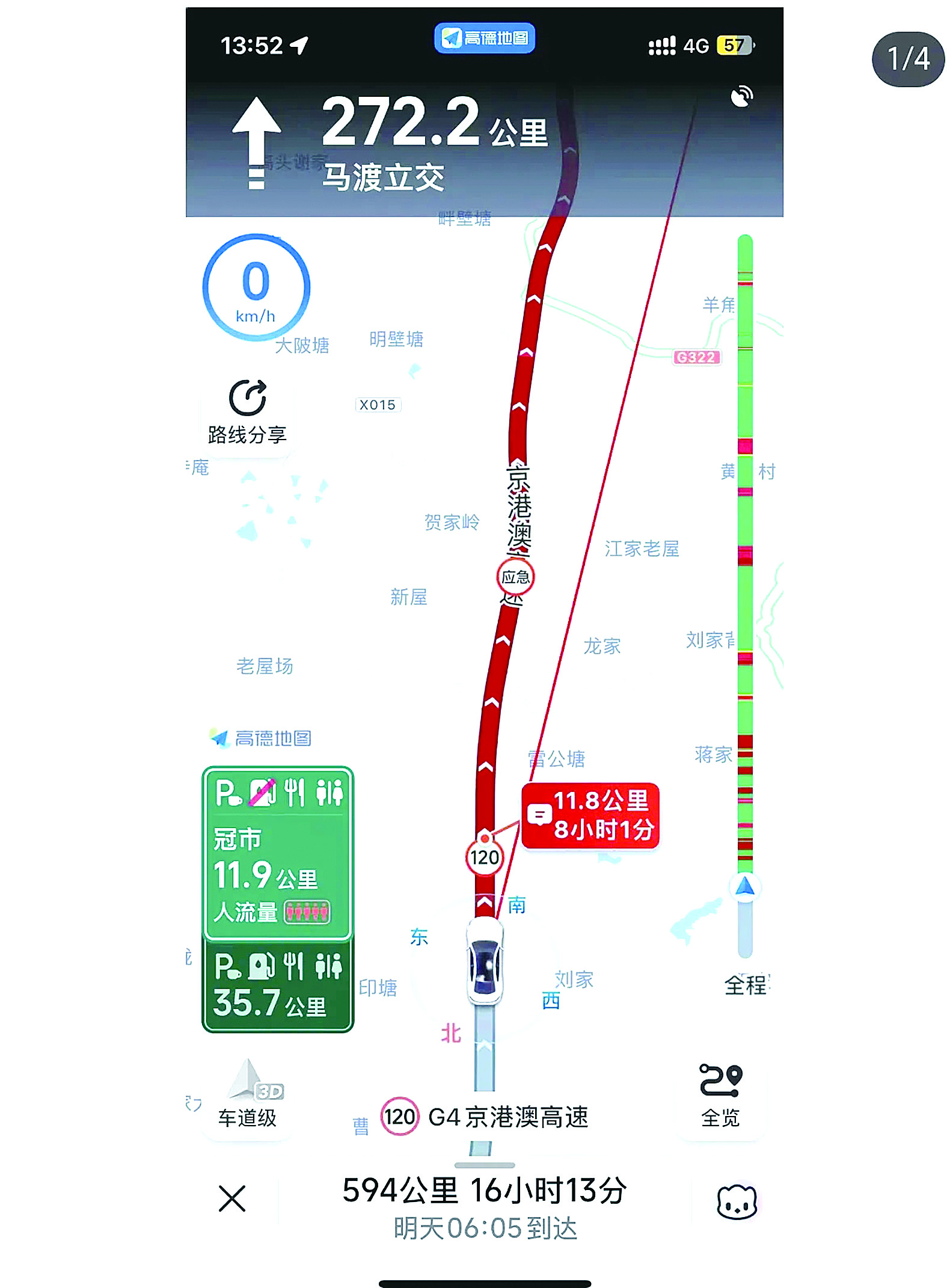 当车辆逐渐接近株洲时,原本宽敞的路面开始变得拥挤。“一开始只是车辆稍微多点。”汪先生回忆道,随着时间的推移,车流量越来越大,车速也越来越慢,几度“停摆”。汪先生的心情也从最初的期待变为了焦虑。原本预计中午时分就能抵达的目的地,却遥遥无期。