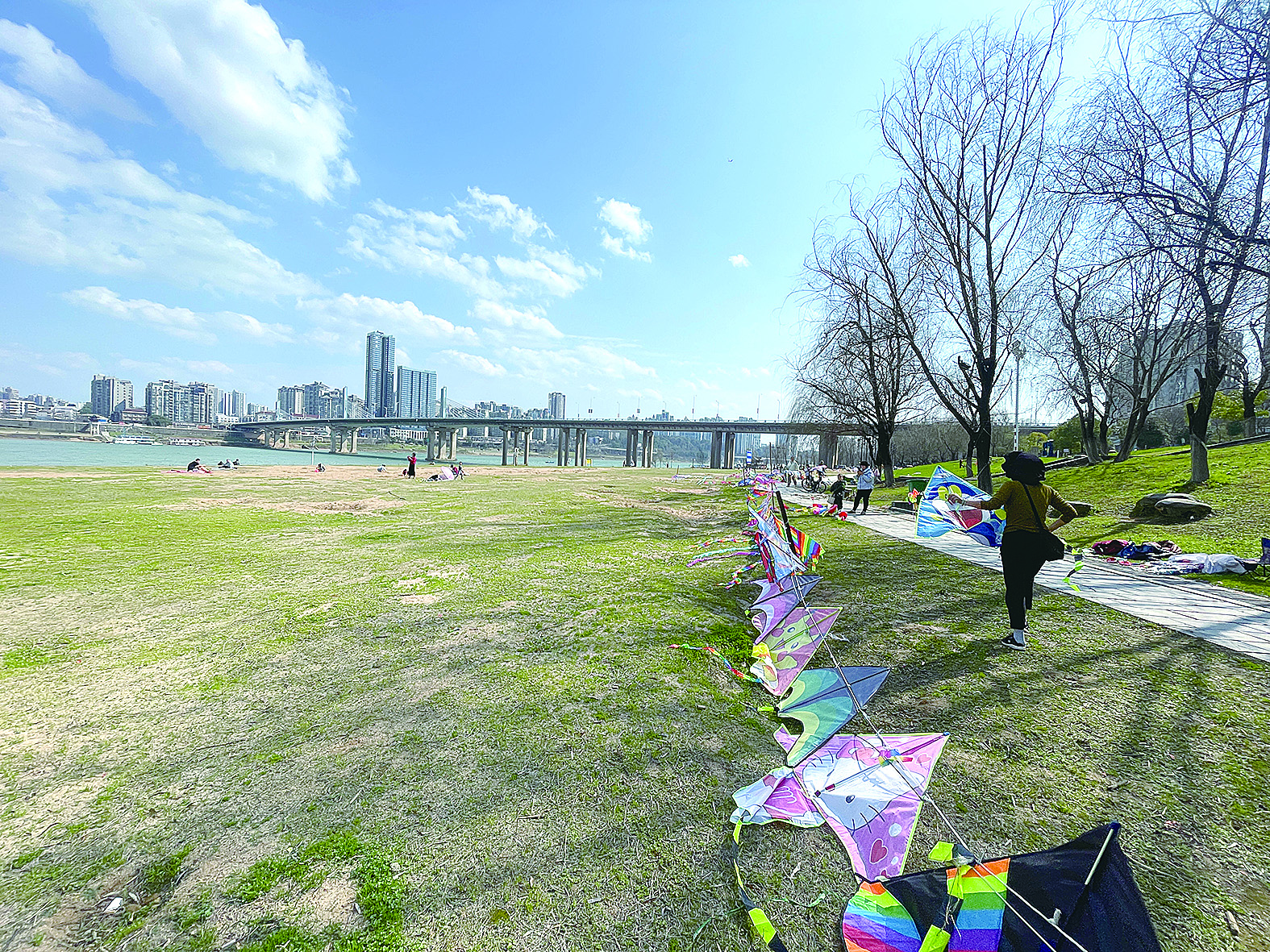 市民踏春出游带动风筝热。 记者/伍靖雯 摄
