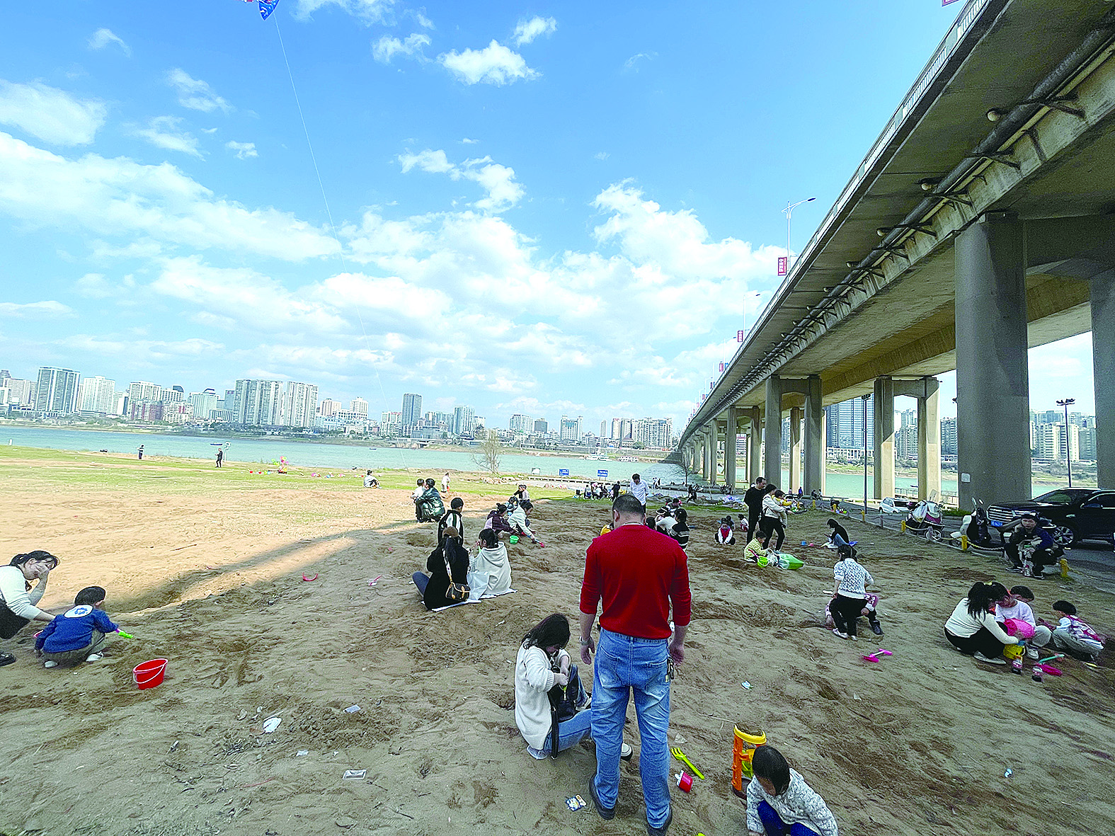 湘江风光带沿线,不少市民带着孩子在此游玩。 记者/伍靖雯 摄