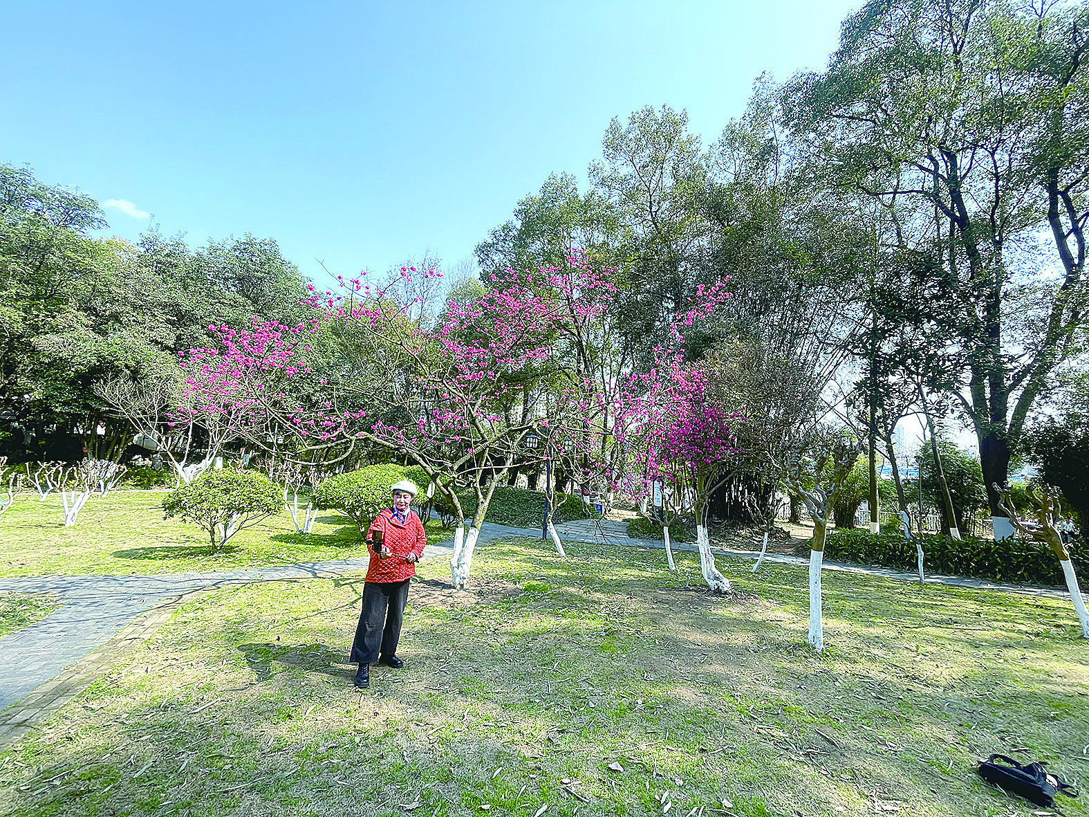 石峰公园蔷薇园内早樱绽放。 记者/伍靖雯 摄