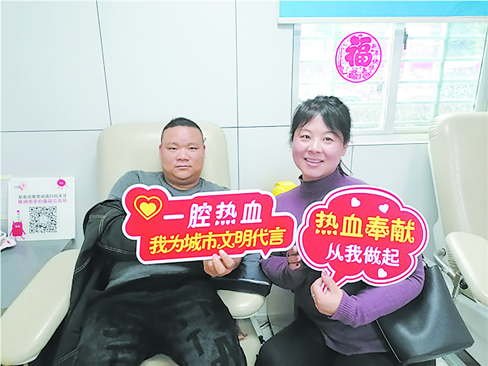 春节期间,李正香和妻子刘敏一同献血。 通讯员供图