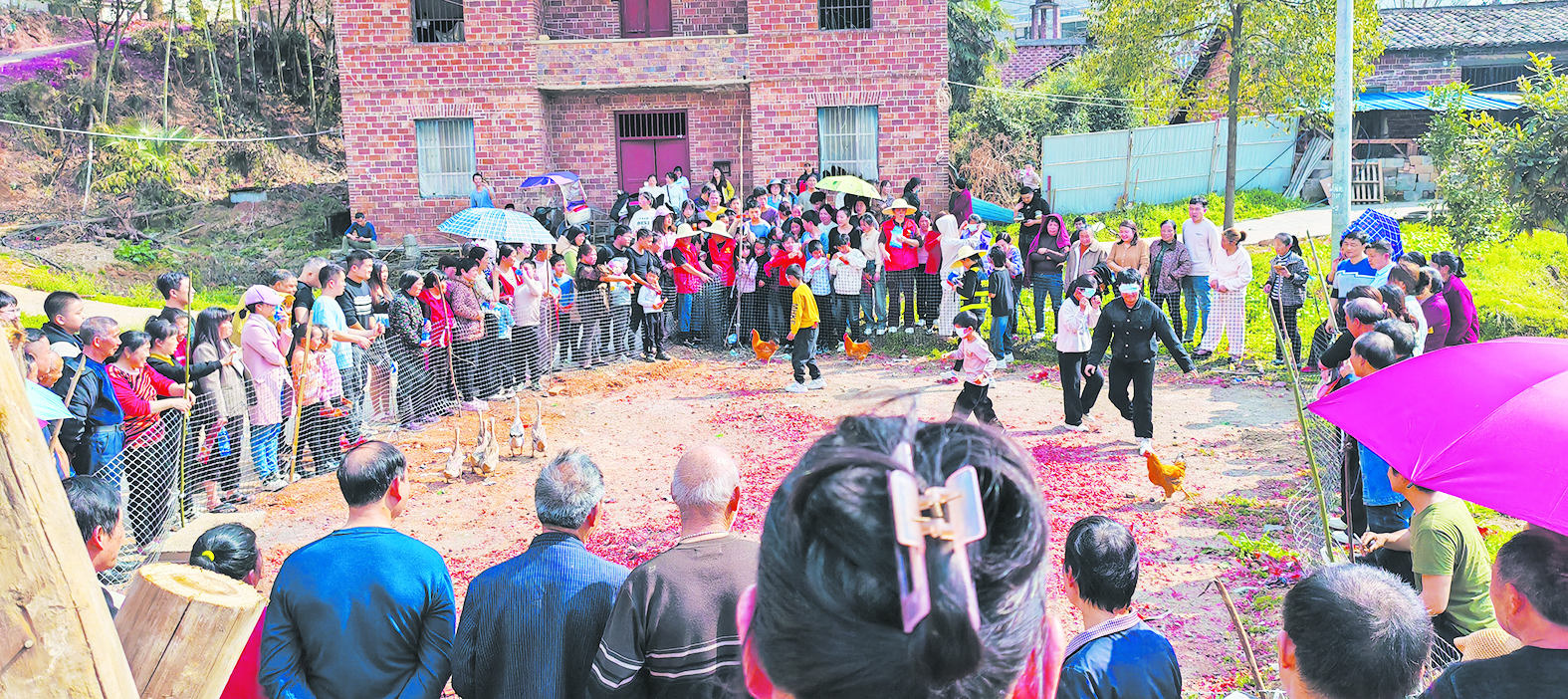 趣味活动“蒙眼抓鸡”受村民喜欢。 通讯员供图