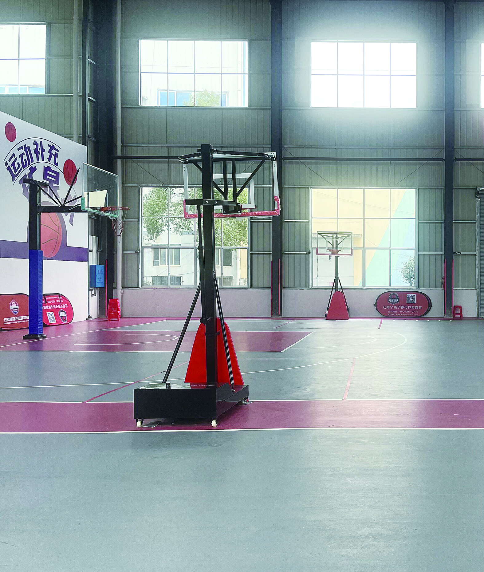 球馆内还摆放着篮球架等器材。 记者/刘平 摄