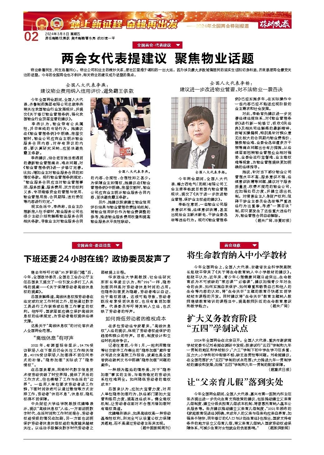 两会女代表提建议 聚焦物业话题