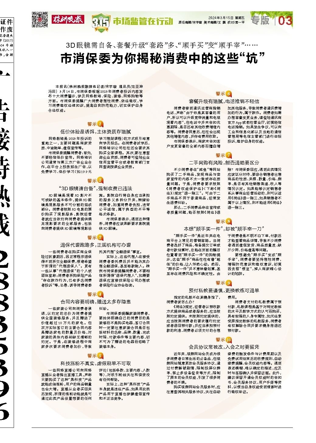 市消保委为你揭秘消费中的这些“坑”