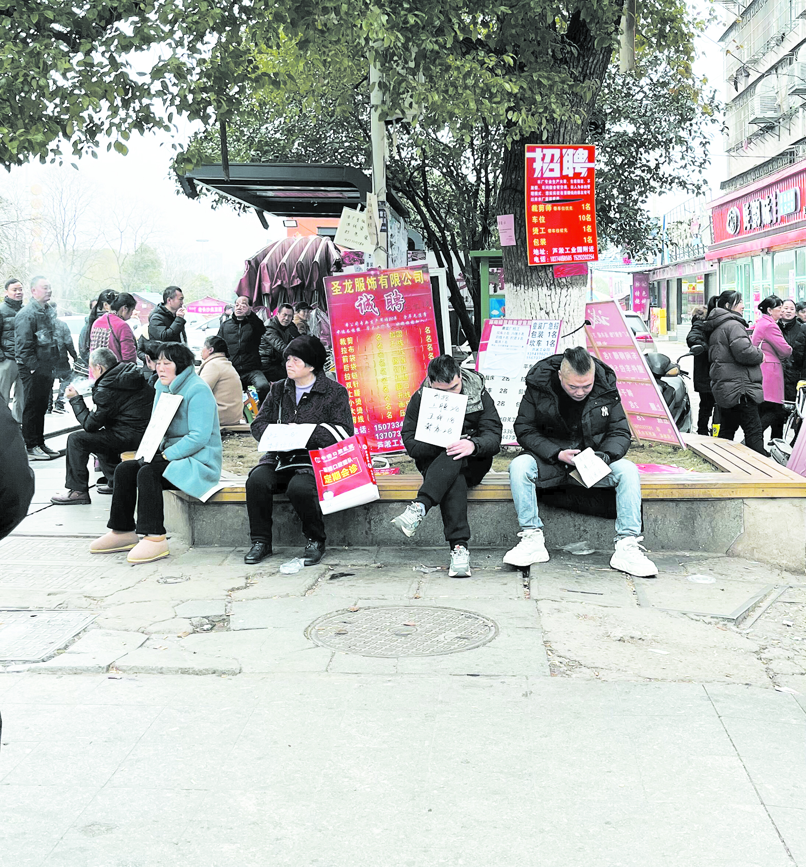 3月4日,在位于荷塘区东湖路边的荷塘区零工服务市场,记者见到不少求职者和招聘者聚集一起。有招聘者介绍,该处的求职招聘活动在周末也“不打烊”,极大地方便了群众。图为招聘者手持资料在现场招人。 株洲晚报融媒体记者/刘平 摄