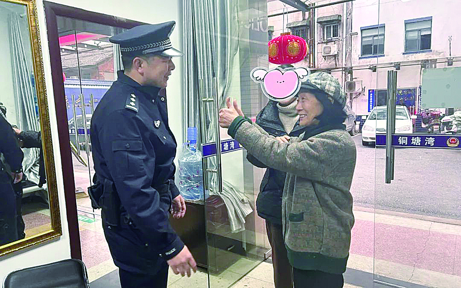娭毑笑眯眯的向民警李俊竖起了两个大拇指。 通讯员供图