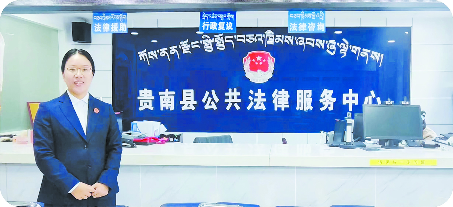 袁芳在贵南县公共法律服务中心。受访者本人供图