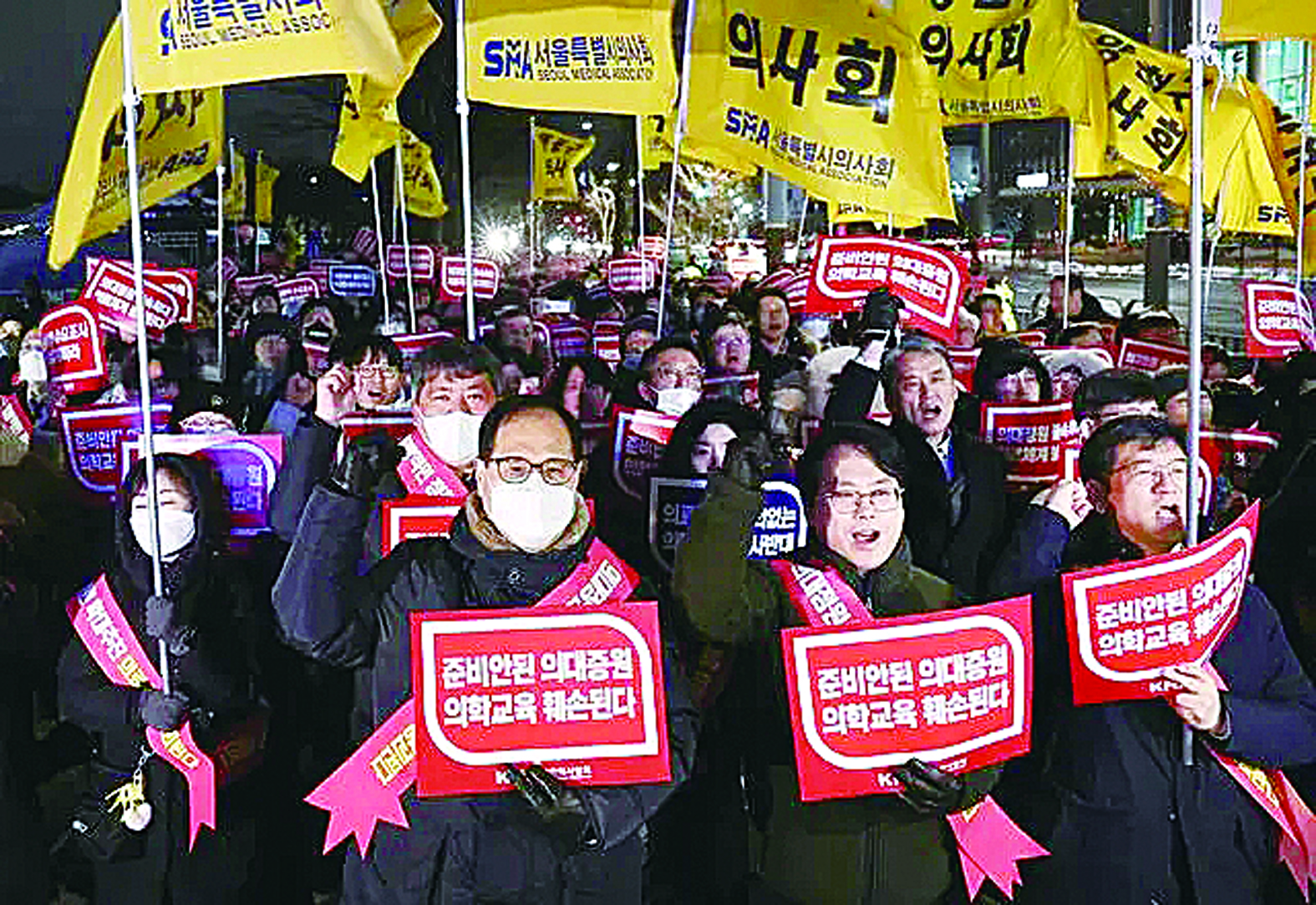 首尔大学医学院教授协会紧急对策委员会3月11日表示,若政府不能出台解决方案,教授们将从18日开始提交辞职书。韩国医科大学教授协会12日表示,若实习和住院医生以及医科大学的学生遭受损失,医科大学教授将坚决追究政府责任,采取行动解决问题。同日,韩国实习和住院医生代表、医科大学学生、考生等对韩国政府提出集体诉讼,要求“取消医科大学扩招2000人的决定”。