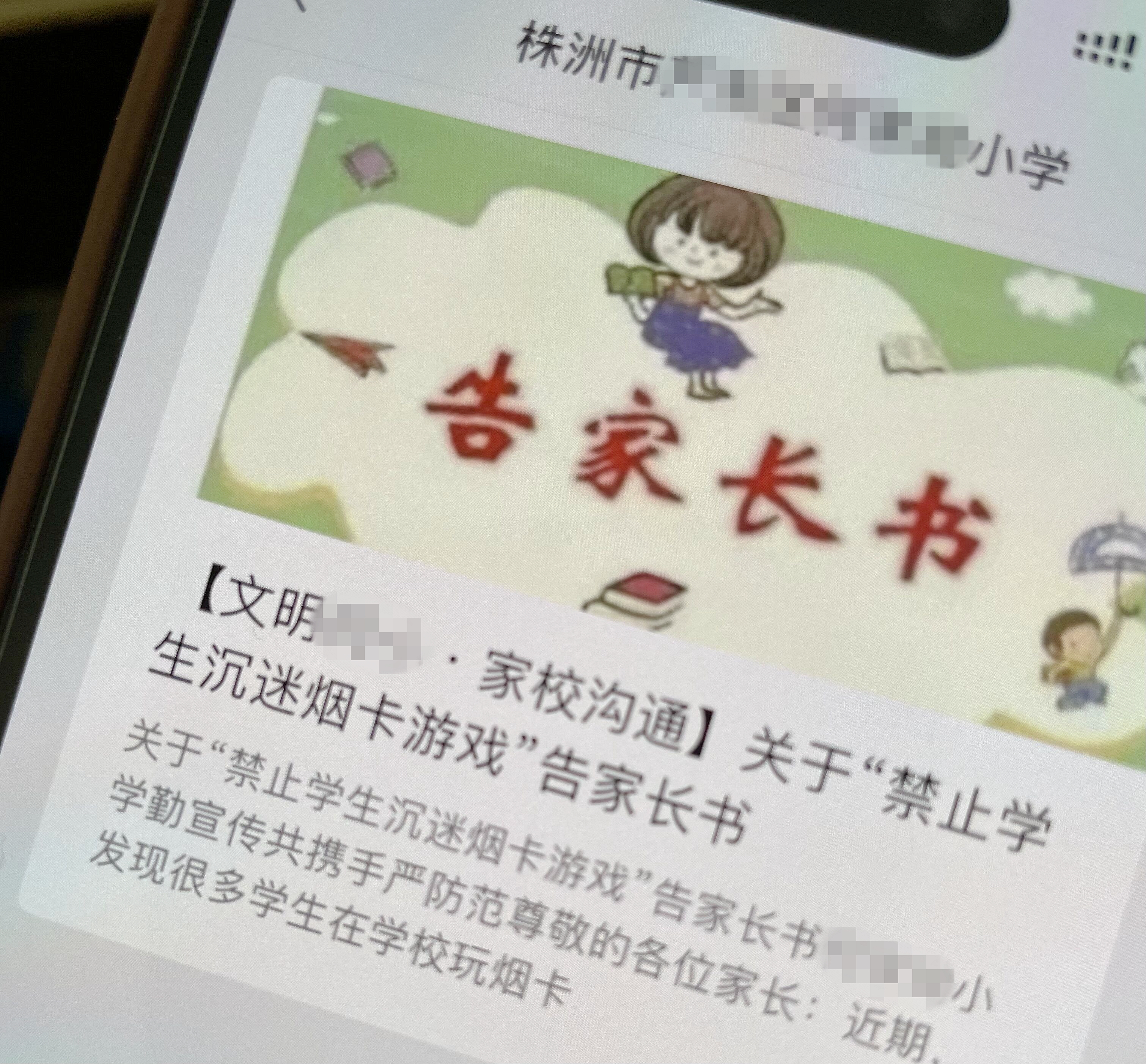 防止学生沉迷“烟卡”,我市某学校发出“告家长书”。 记者/戴凛 摄
